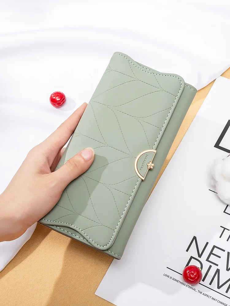 Color: black - 2023 spring new women's long purse Japanese and South Korea small fresh plaid buckle folding hold bag large capacity women's mul