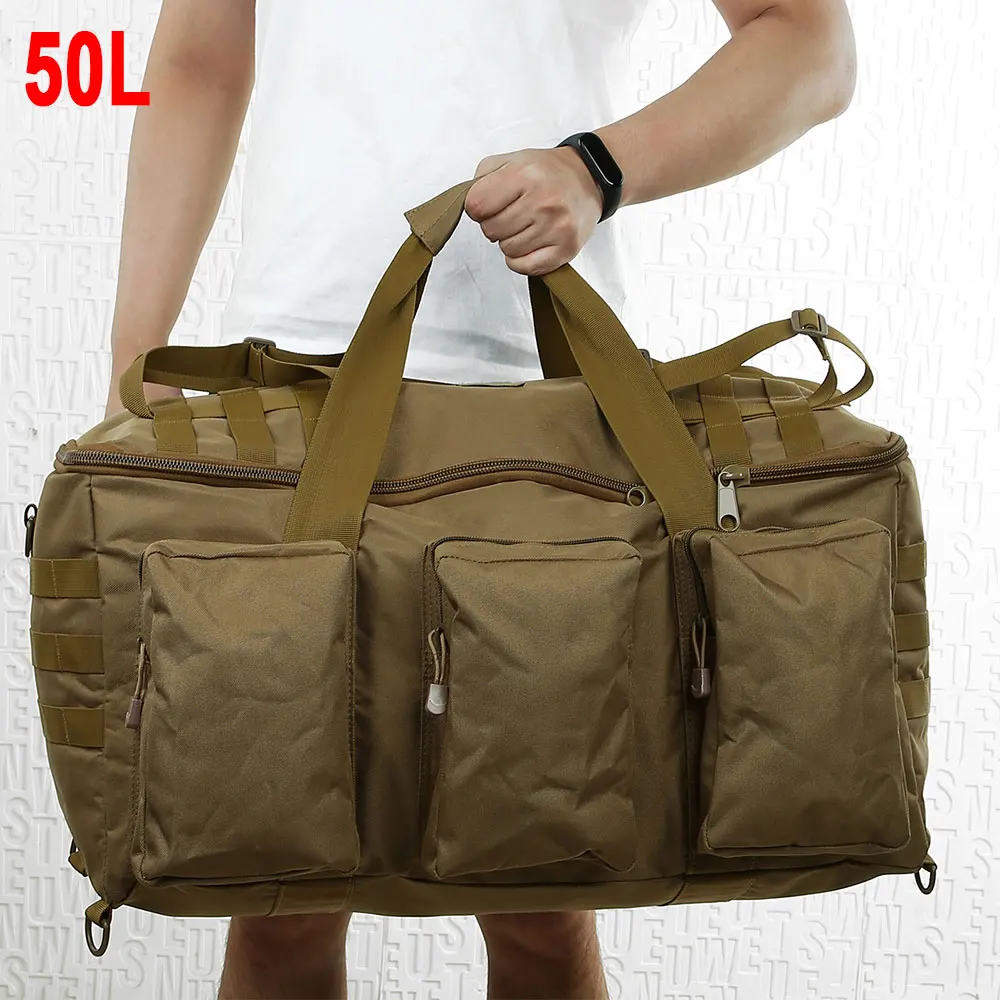 Color: black - 50L Travel Luggage HandBag Camping Backpack Tactical Large Capacity Men Outdoor Sports Hiking Climbing Mountaineering Trip Bag