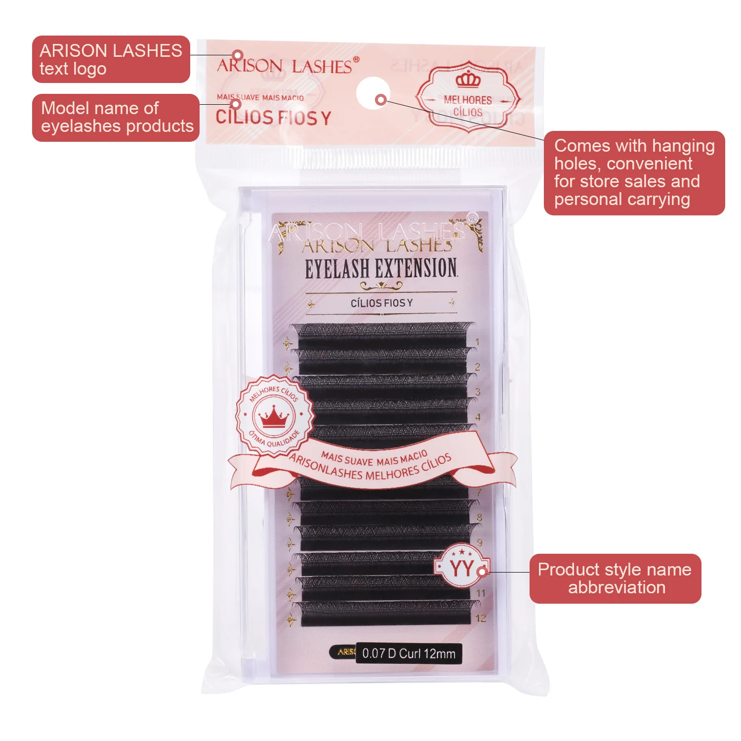Color: BLACK & RED, Curl: D, Thickness: 0.07mm, Length: 9mm - ARISON YY Lashes and 3D/4D/5D W Shape Lashes Brasileiro Premade Volume Eyelashes Extension Soft Thin Easily Grafting Extension