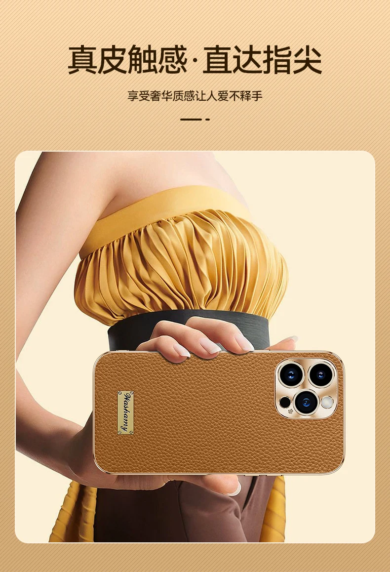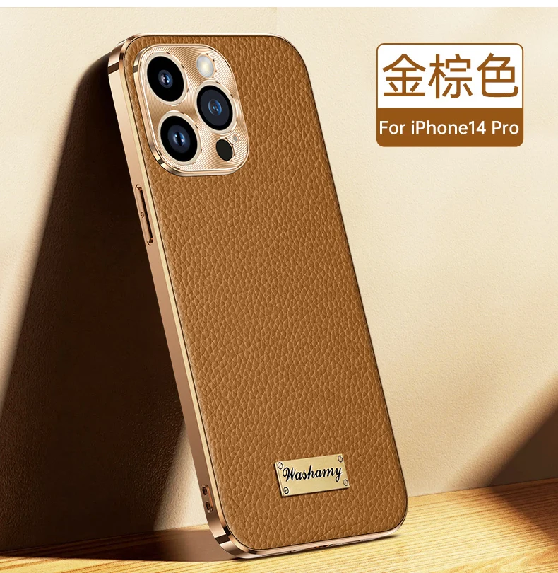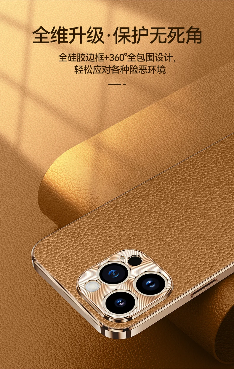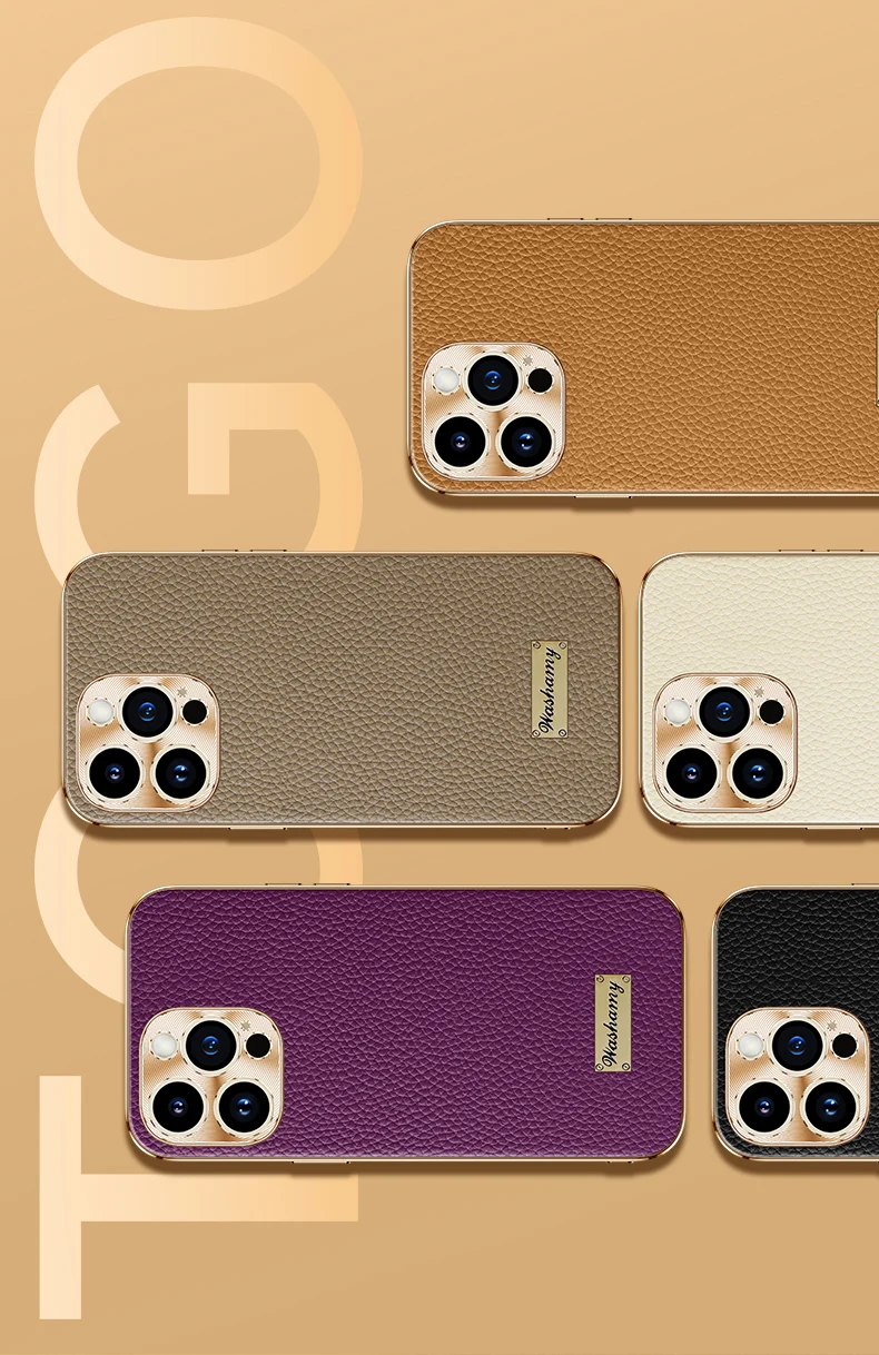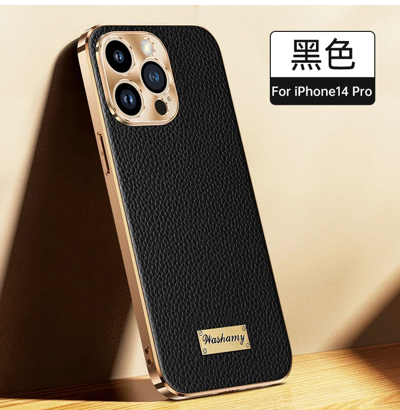 Color: black, Compatible-Phone Models: For iPhone 15 Plus - Luxury Genuine Leather Phone Case For iPhone 15 14 13 Pro Max Plating Soft Silicone Frame Shockproof Cover For iPhone 16 Pro Max