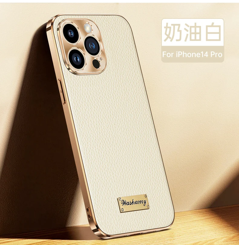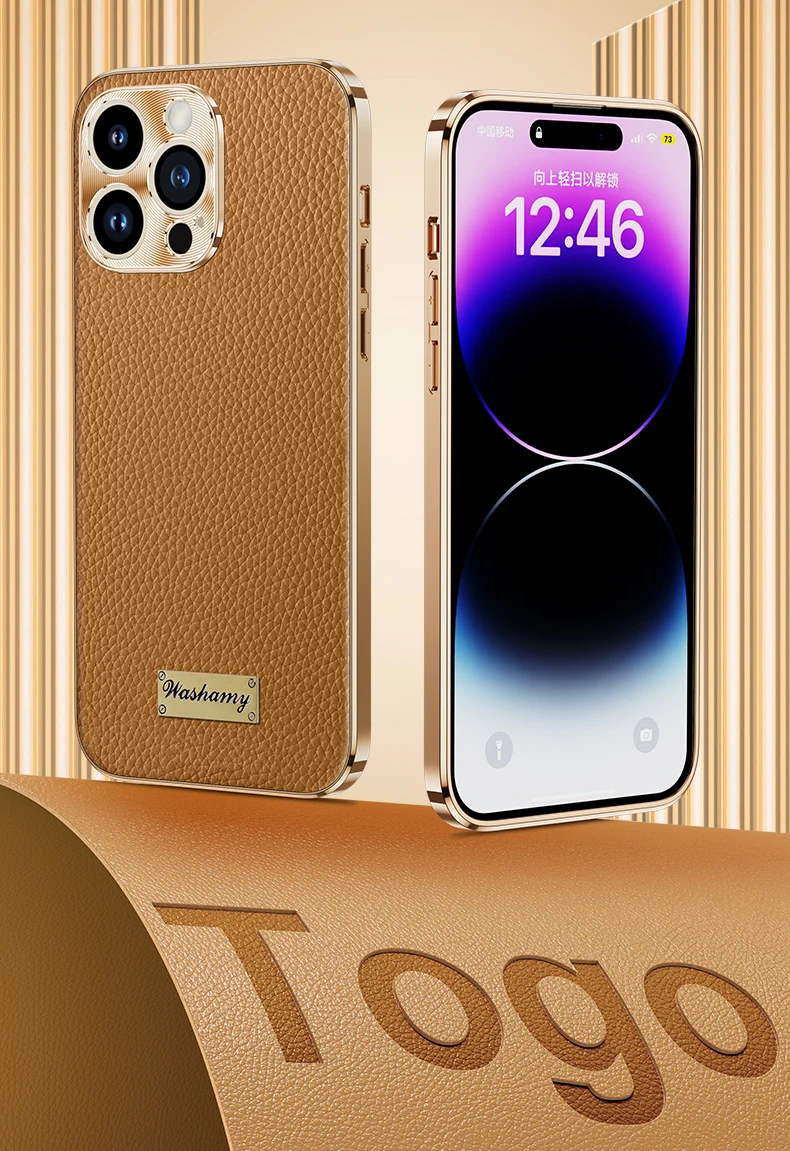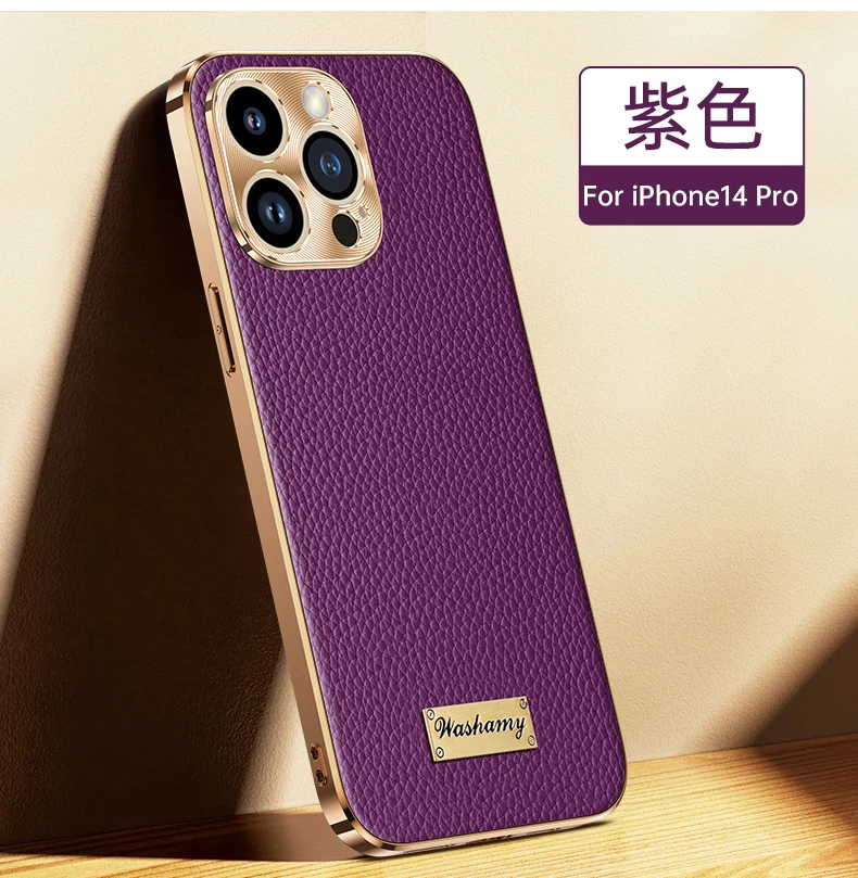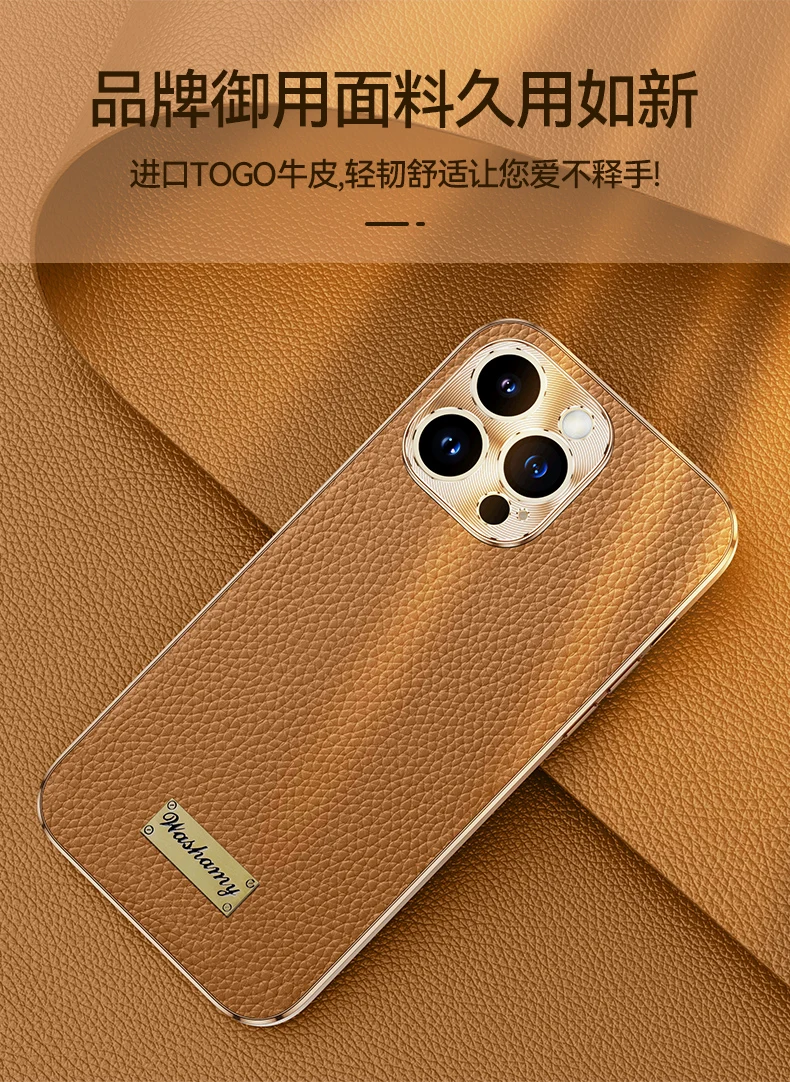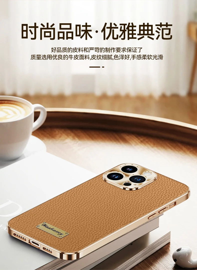 Color: black, Compatible-Phone Models: For iPhone 15 Plus - Luxury Genuine Leather Phone Case For iPhone 15 14 13 Pro Max Plating Soft Silicone Frame Shockproof Cover For iPhone 16 Pro Max