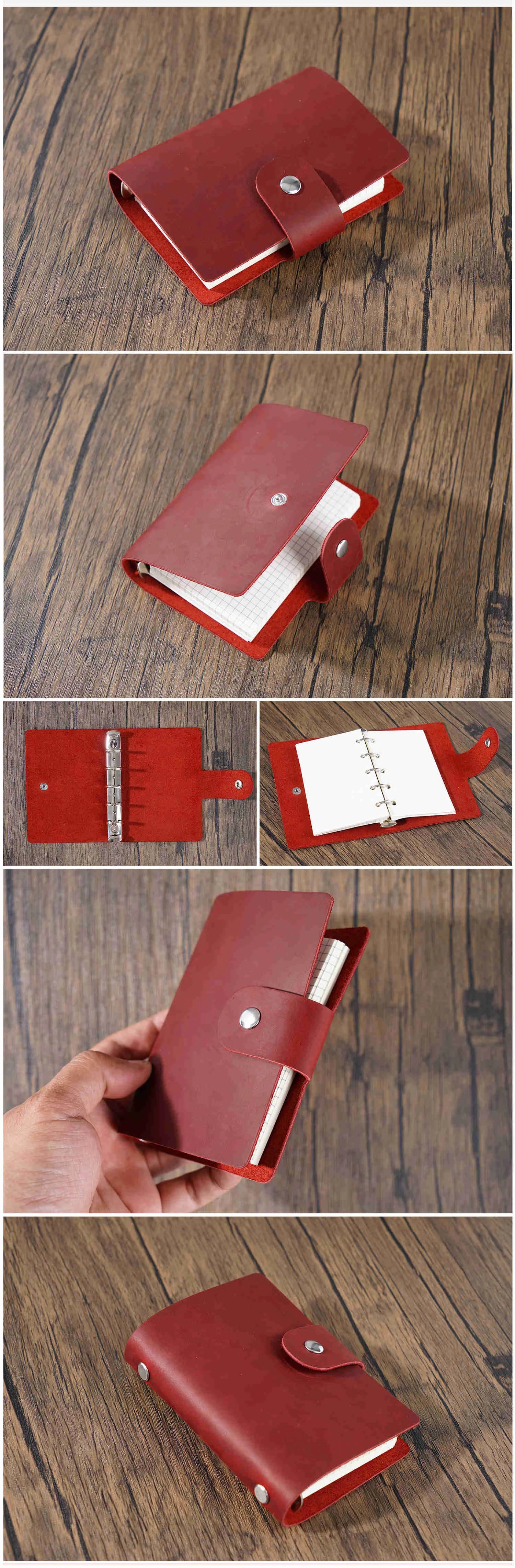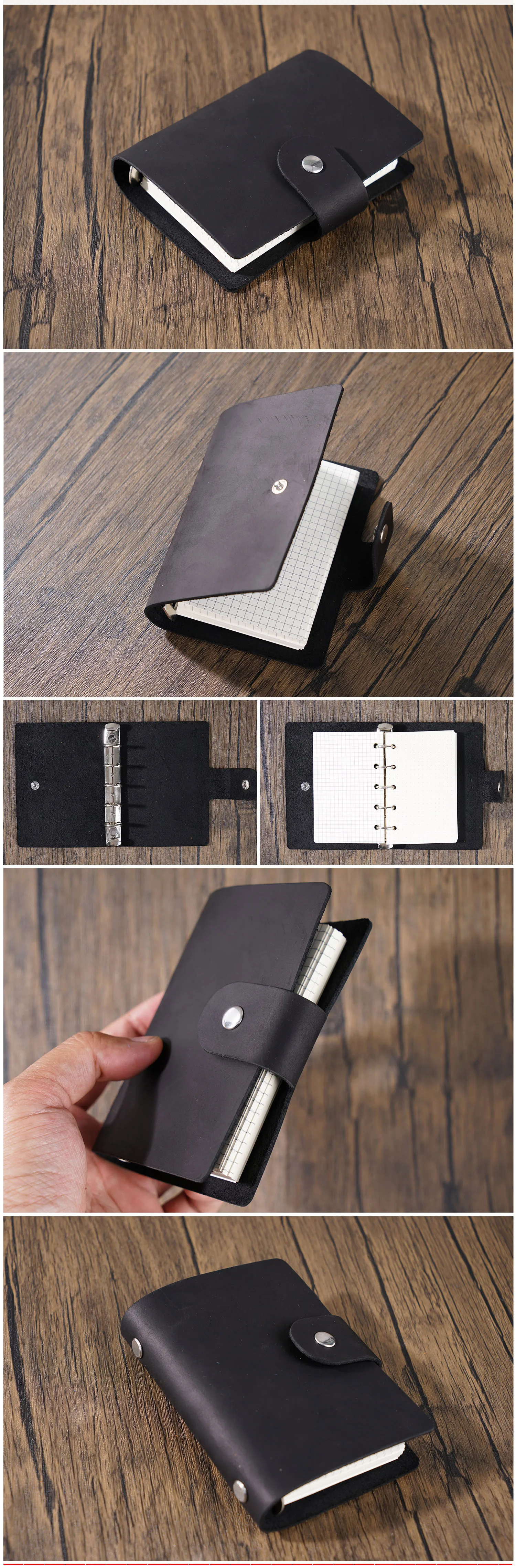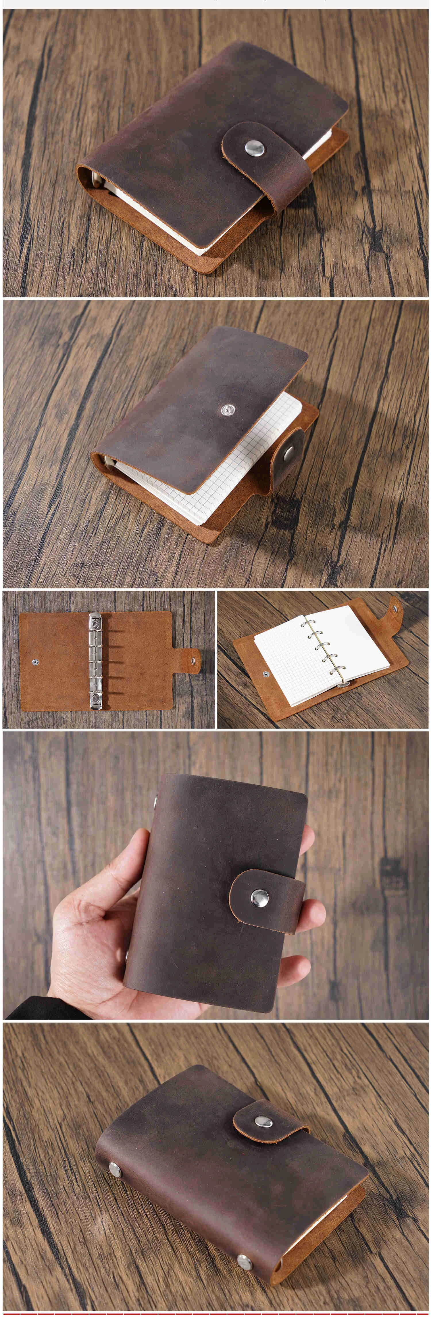 Color: black - Genuine Leather A8 Size Ring Planner Cowhide 5-hole Rings Mini Notebook with 15 MM silver Rings Retro Organizer Diary Notepad