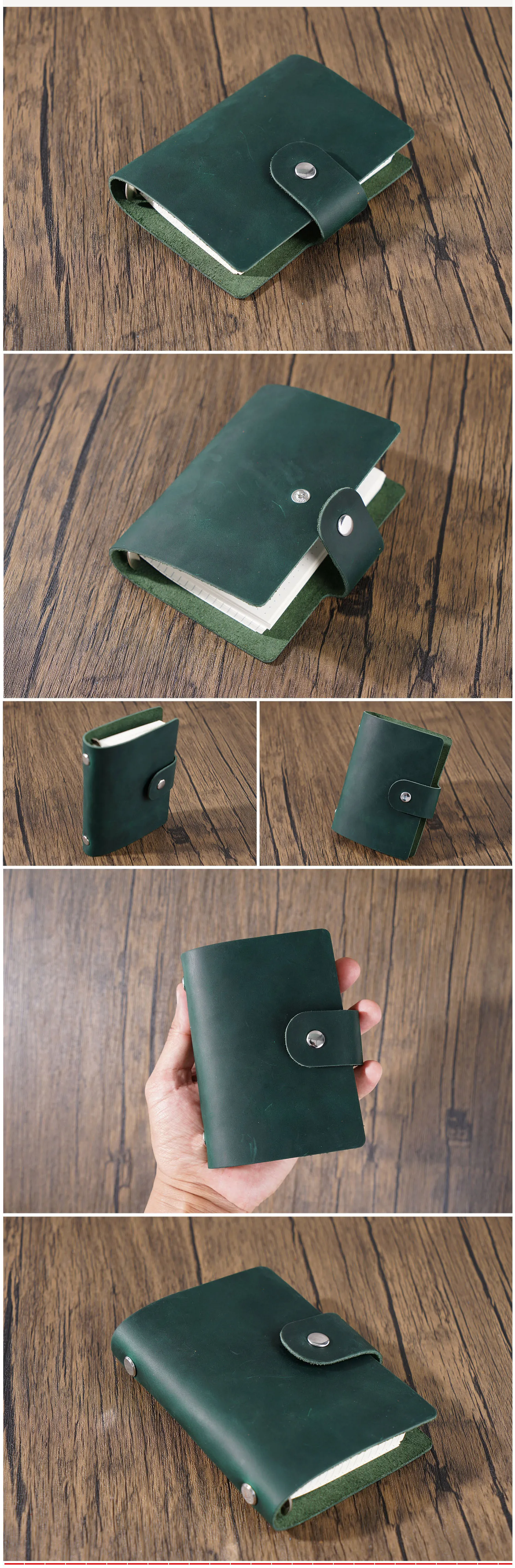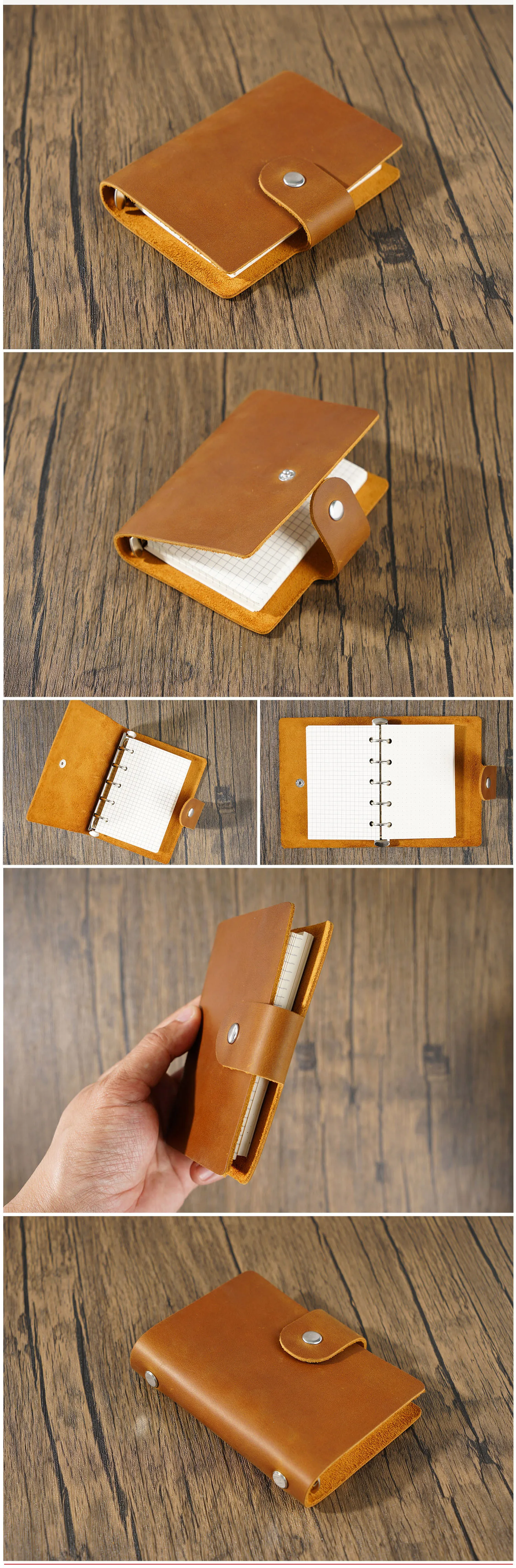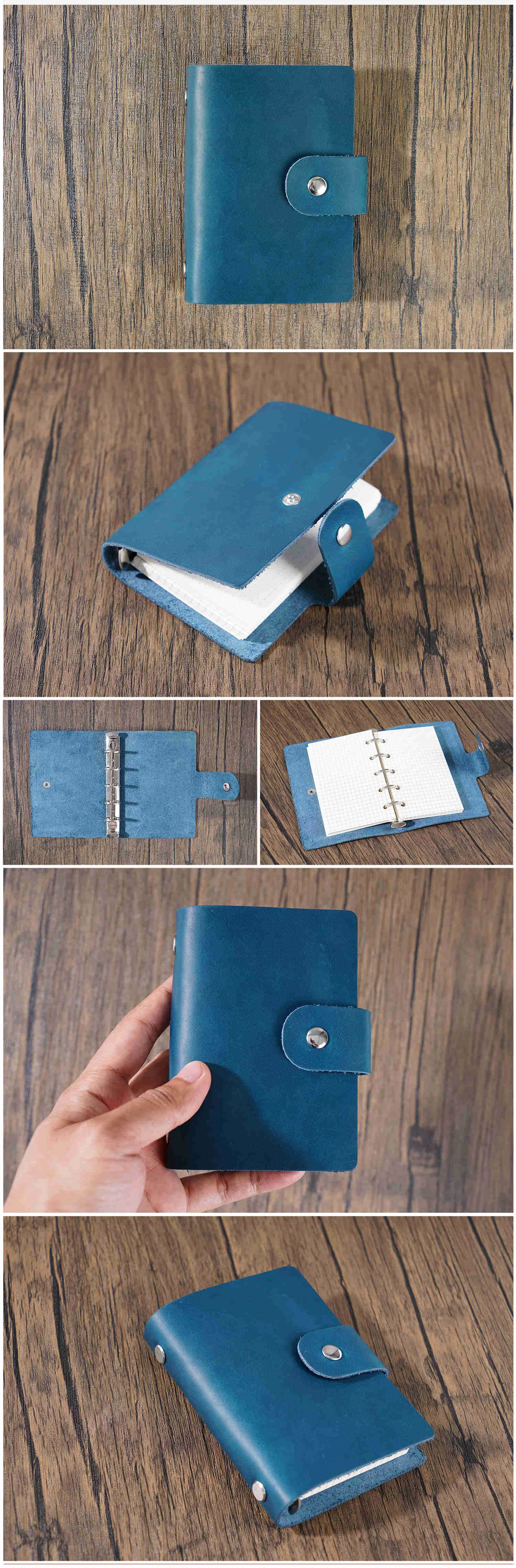 Color: black - Genuine Leather A8 Size Ring Planner Cowhide 5-hole Rings Mini Notebook with 15 MM silver Rings Retro Organizer Diary Notepad