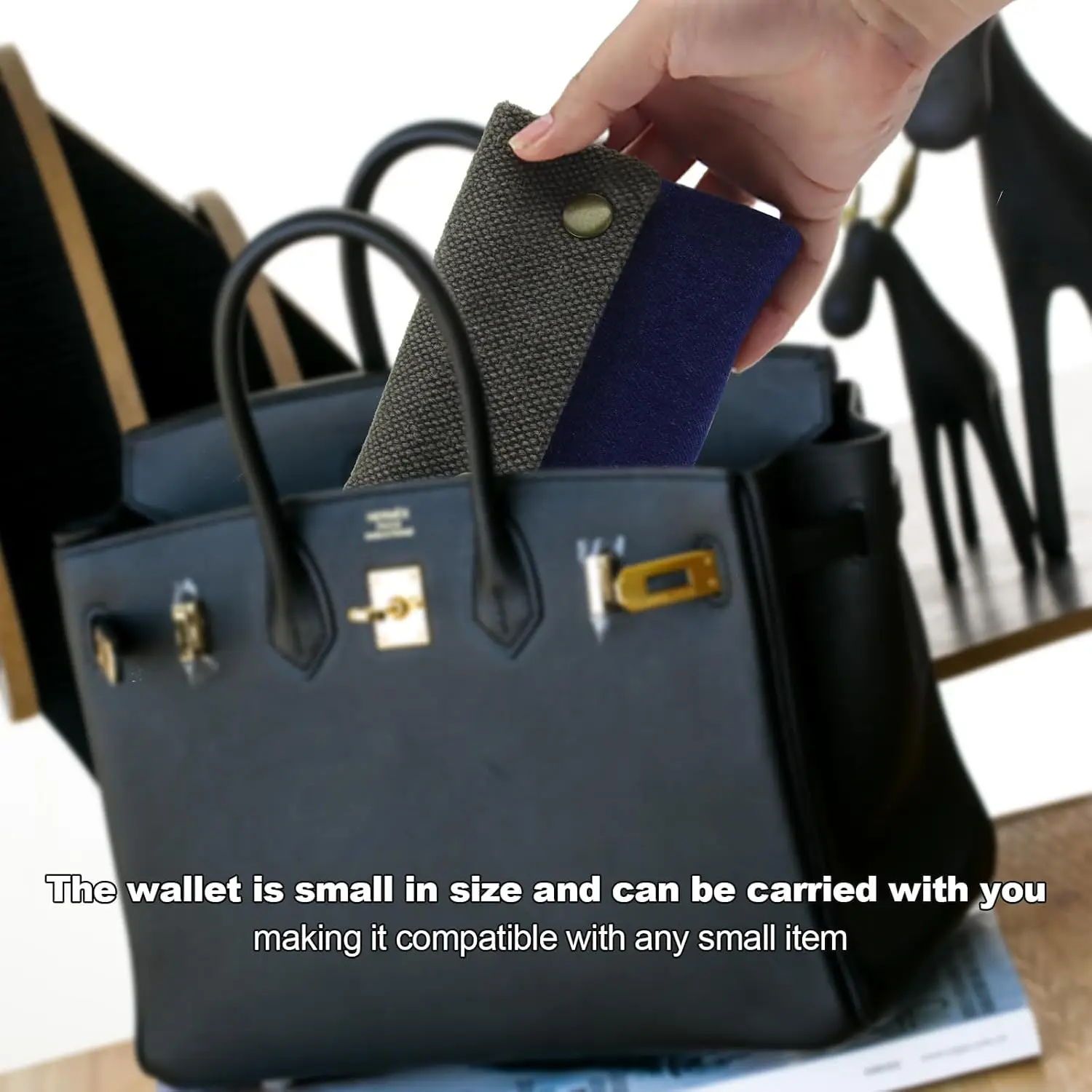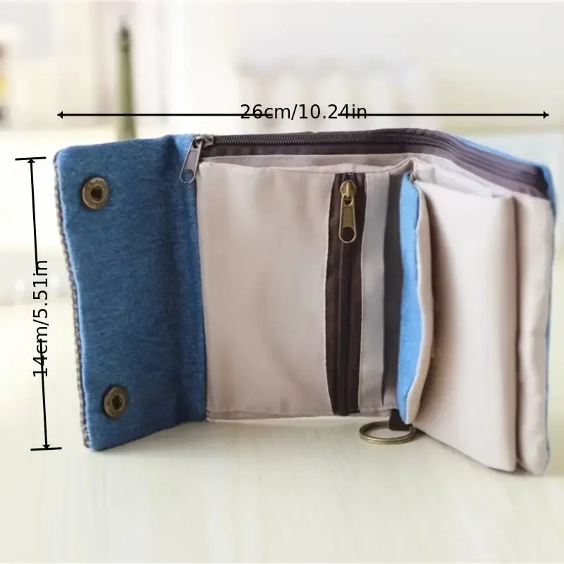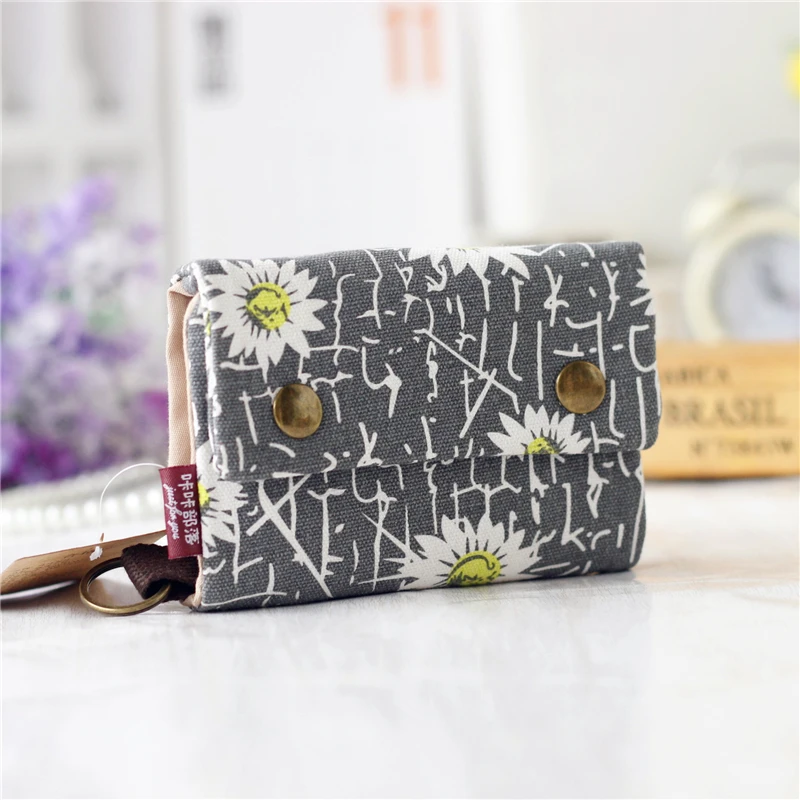 Color: black - Handmade Three Fold Fabric Wallet Women Men Simple Short Zipper Purses for Teens Personality Multi-function Key Bag Card Holder