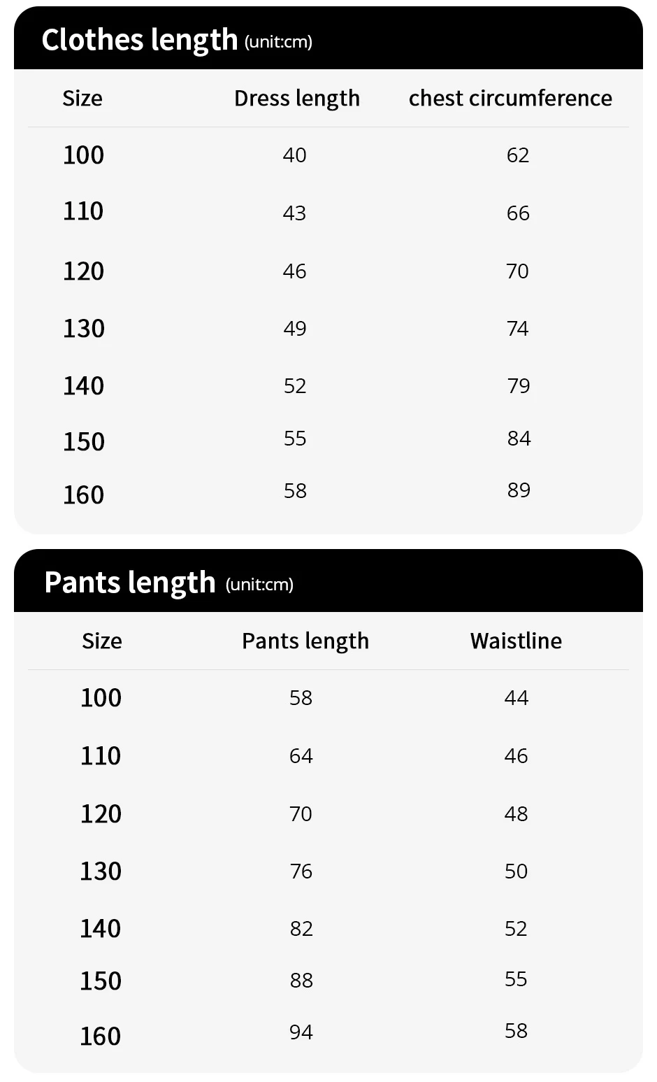 Size 100cm-160cm