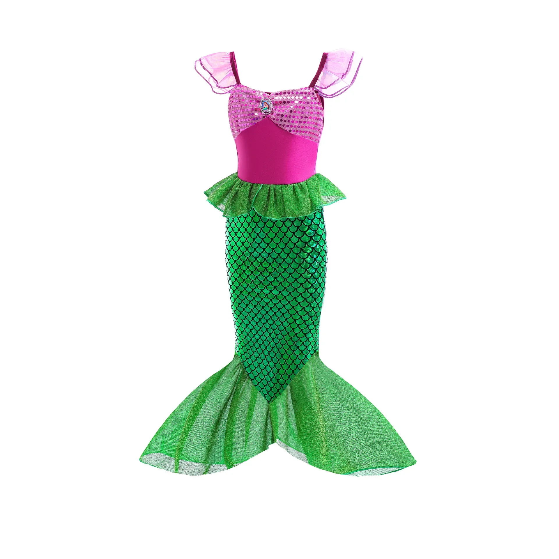 Color: black, Kid Size: 9 - Disney Little Mermaid Ariel Costumes for Girls Princess Dress Cosplay Halloween Carnival Kids Birthday Party Dress Up Clothing