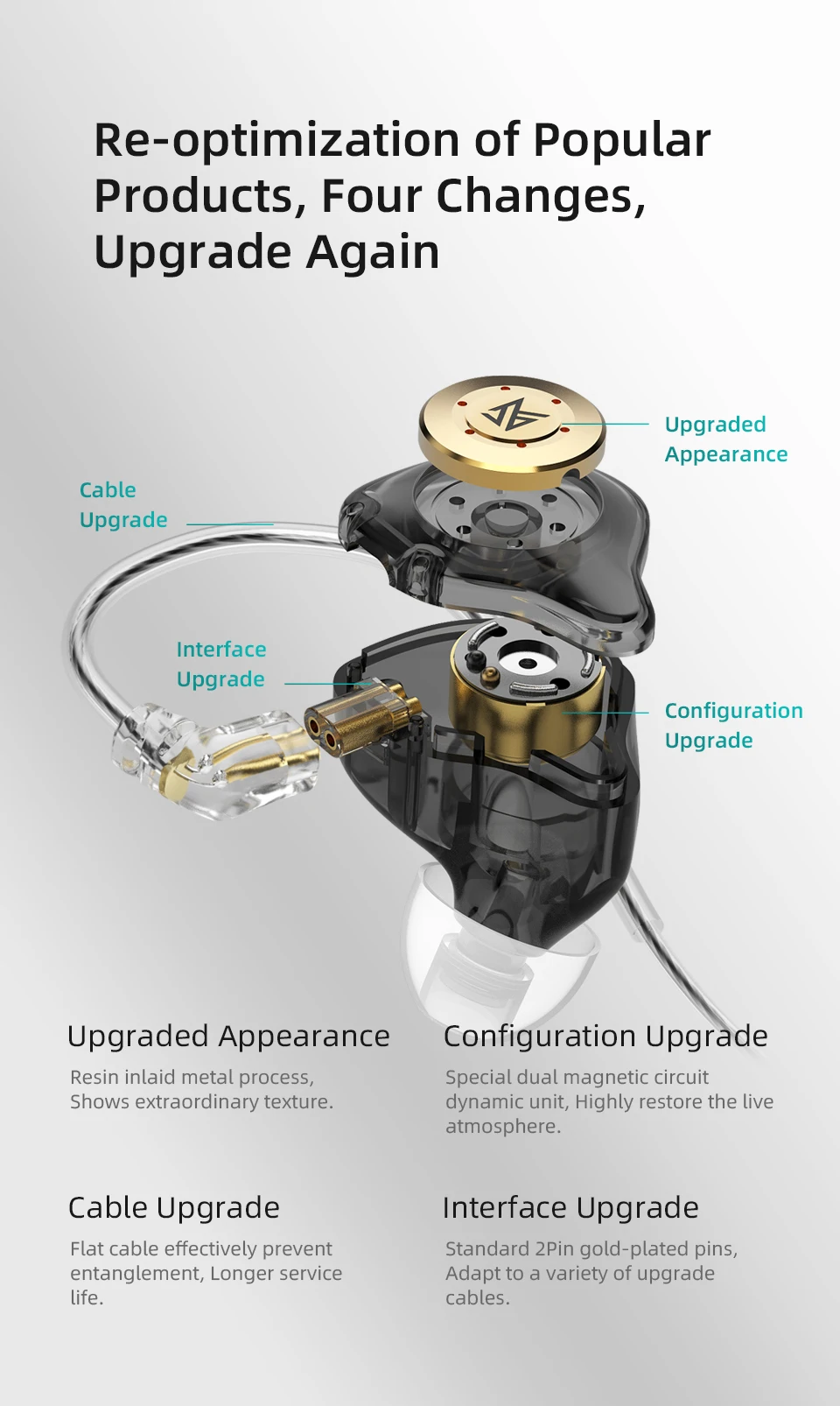 Color: black - KZ EDX PRO IEM Earphones Bass Sound Earbuds Dynamic Drive HiFi Headphones Sport Noise Cancelling Headset with Detachable Cable