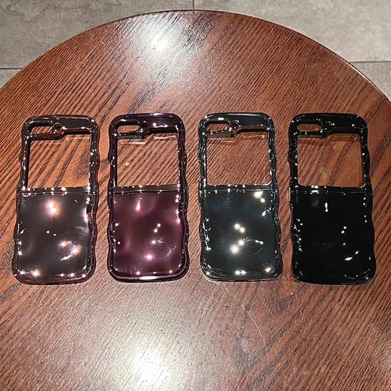 Color: black, Material: ABS - Cartoon Stone Pattern Gloss Wave Case for Samsung Galaxy Z Flip 6 5 flip6 Plating Meteorite Soft TPU Shockproof Ins Korean Cover