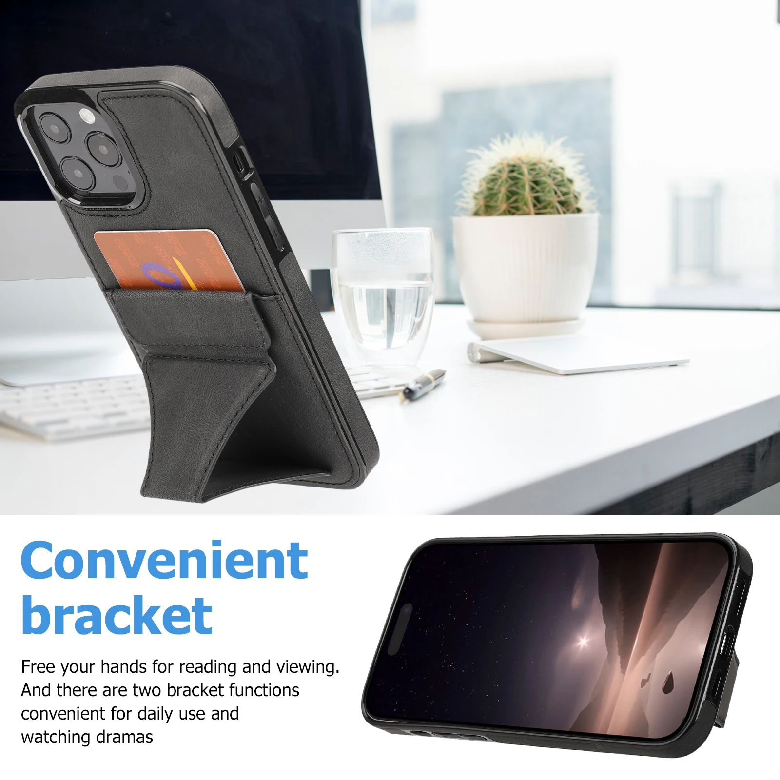 For iPhone Case: Leather Card Slot Wallet Kickstand Phone Case