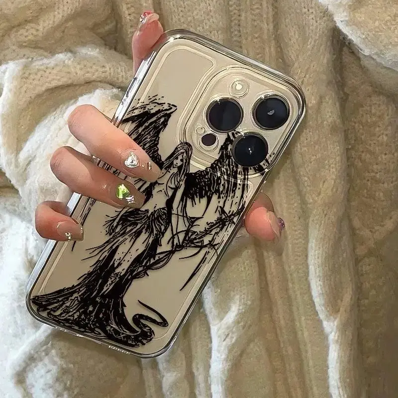 Color: Black, Material: Denim - luxury bloodsacrifice Black Angel Death demon Phone Case For iPhone 15 14 13 12 11 Mini Pro Max XR XSMax 7 8 Plus SE Clear Cover