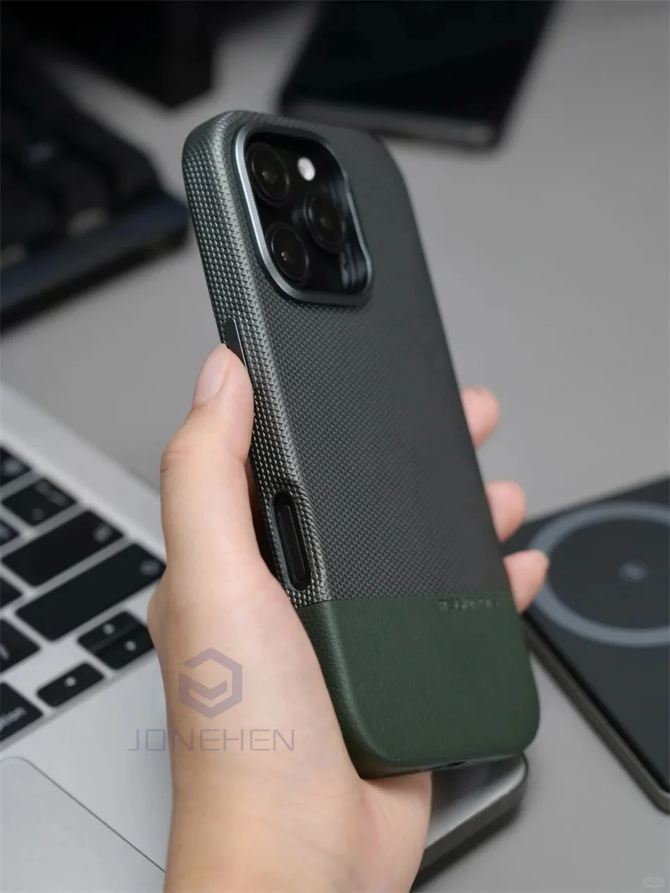 Color: black, Material: Plastic - Business Hit Color Relief Leather Case For iPhone 16 15 14 13 Pro Max For Magsafe Magnetic Wireless Charge Alloy Len Cover Bag