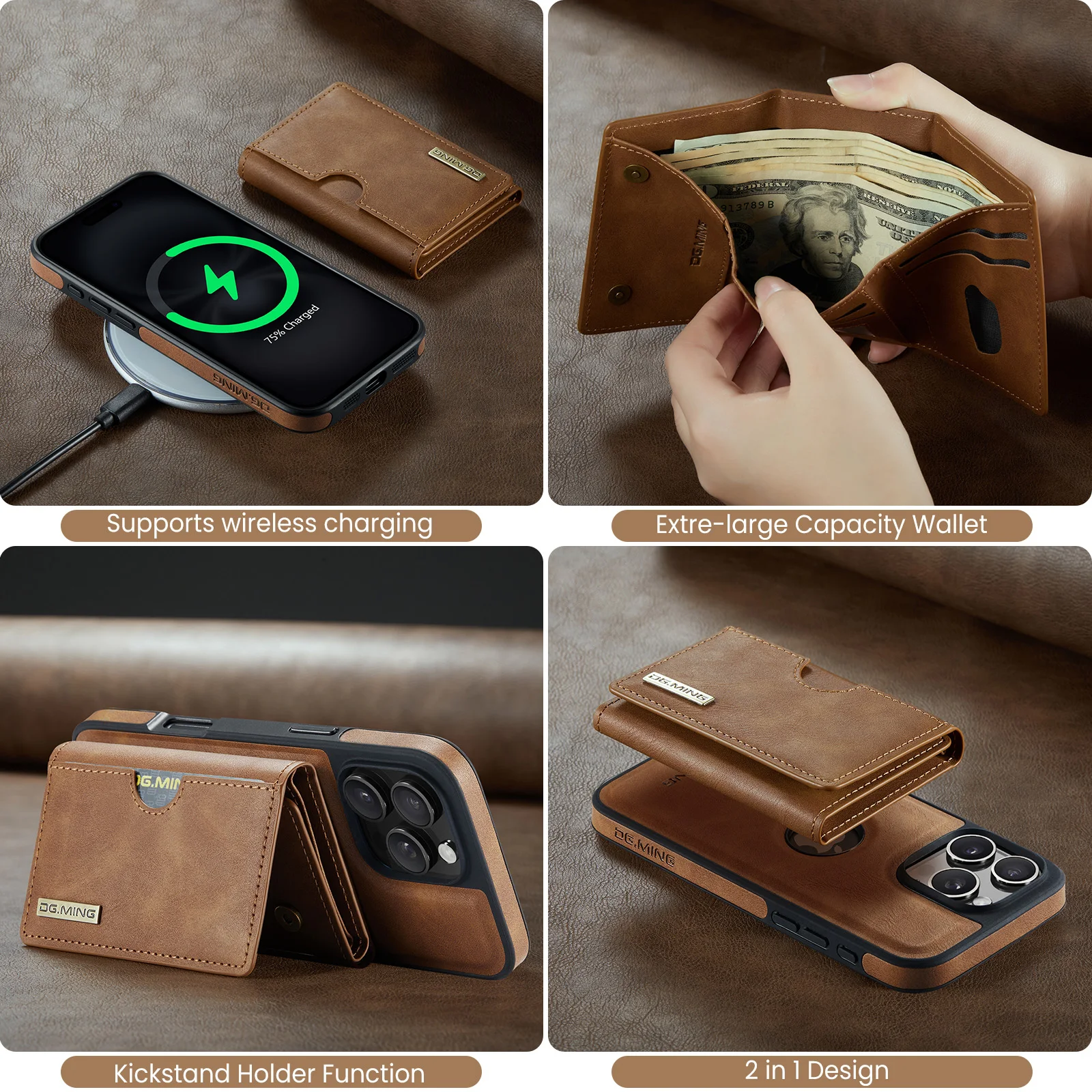 Color: black, Material: PP - Detachable 2 IN 1 Magnetic For Magsafe Leather Case For iPhone 16 Pro Max 15 12 13 11 14 Plus 16e Flip Wallet Card Holder Cover
