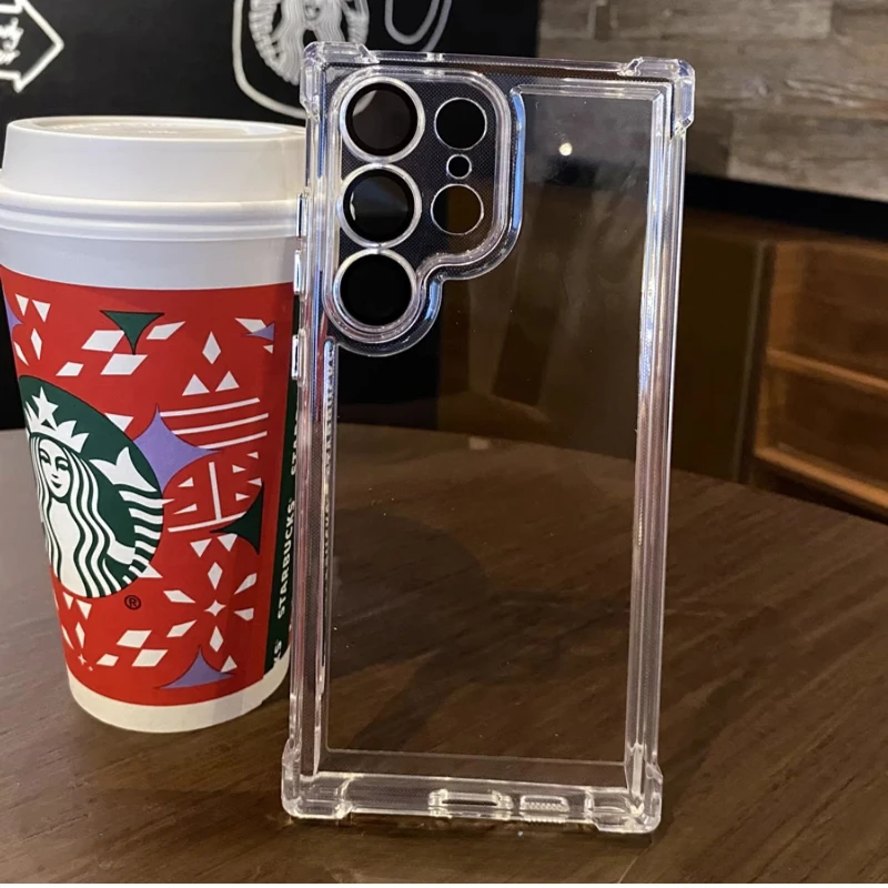 Color: black, Material: PU - Luxury Shockproof Clear Acrylic Case For Samsung Galaxy S24 S23 FE S22 Plus S24 Ultra A34 A54 A15 A25 A35 A55 A53 5G Hard Cover