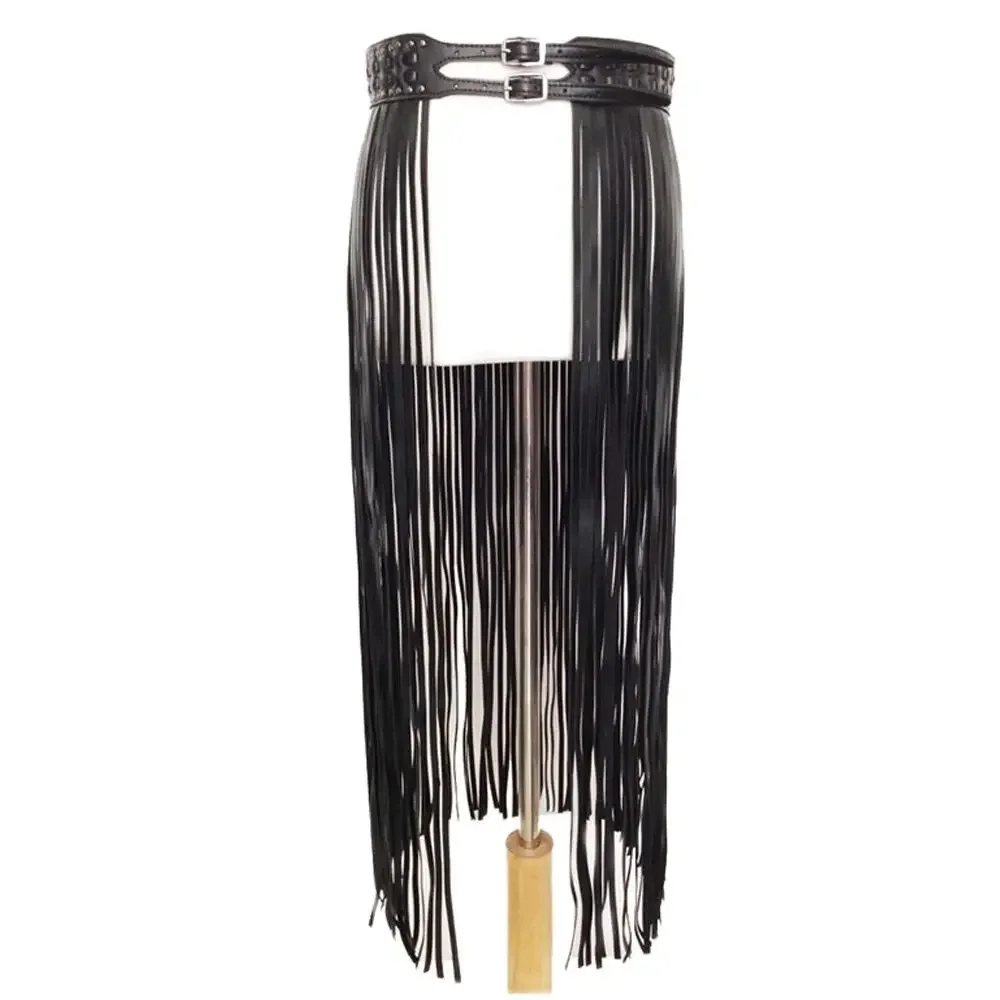 Black long tassel buckle waist belt Size: