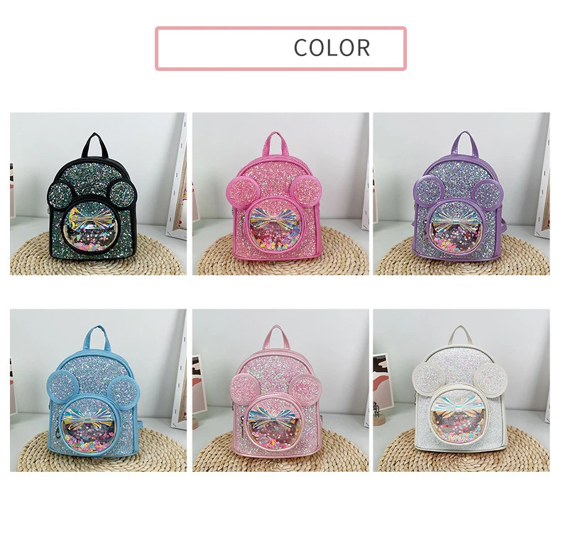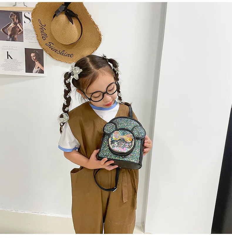 Color: black - New Cute Children's Bag Fashion Sequin Kindergarten Backpacks for Baby Girls Cartoon Casual Schoolbag Princess Bag Girls Gifts