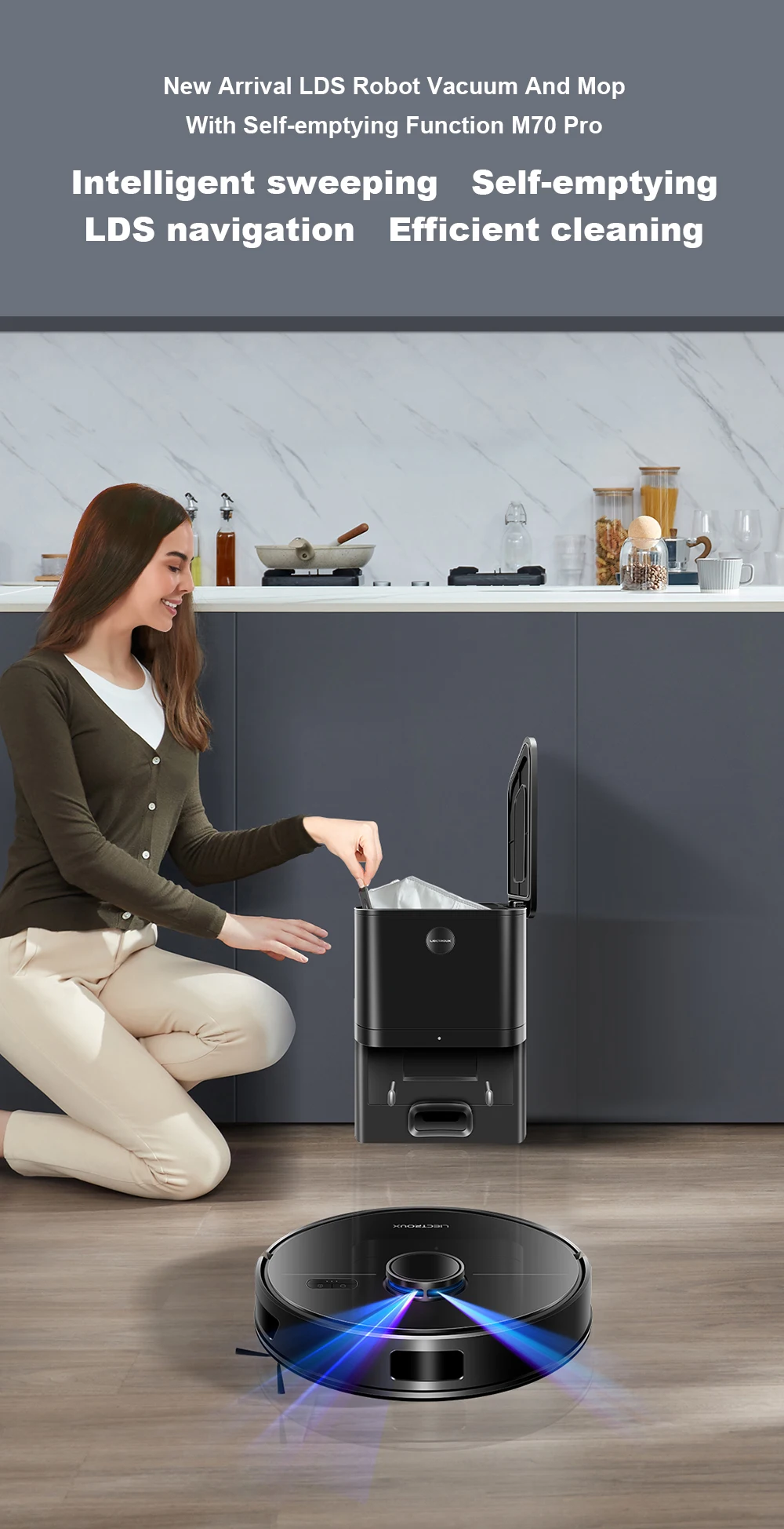 Color: black, Ships From: CN - LDS Robot Vacuum Cleaner & Mop Liectroux M70 Pro,Wet Dry Cleaning,Self Empty,Multi-floor Map,6500Pa,Carpet Boost,Max.175Mins Run