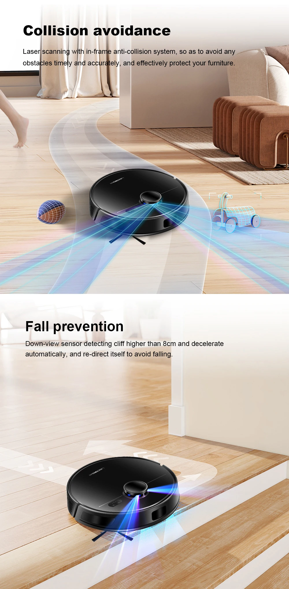 360° scanning and rapid mapping to restore the house type, intelligent planning of cleaning routes, whole house coverage to reduce omissions.Also equipped with a full set of obstacle avoidance sensors, protect walls and furniture from being damaged, and avoid the robotic vacuum from being stuck or falling down the stairs.Having M70 Pro robot vacuum,You don't have to worry about cleaning anymore.