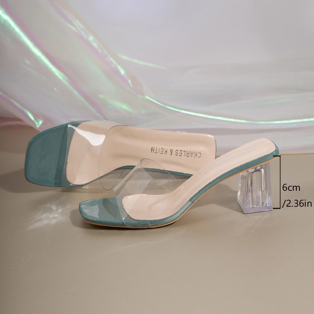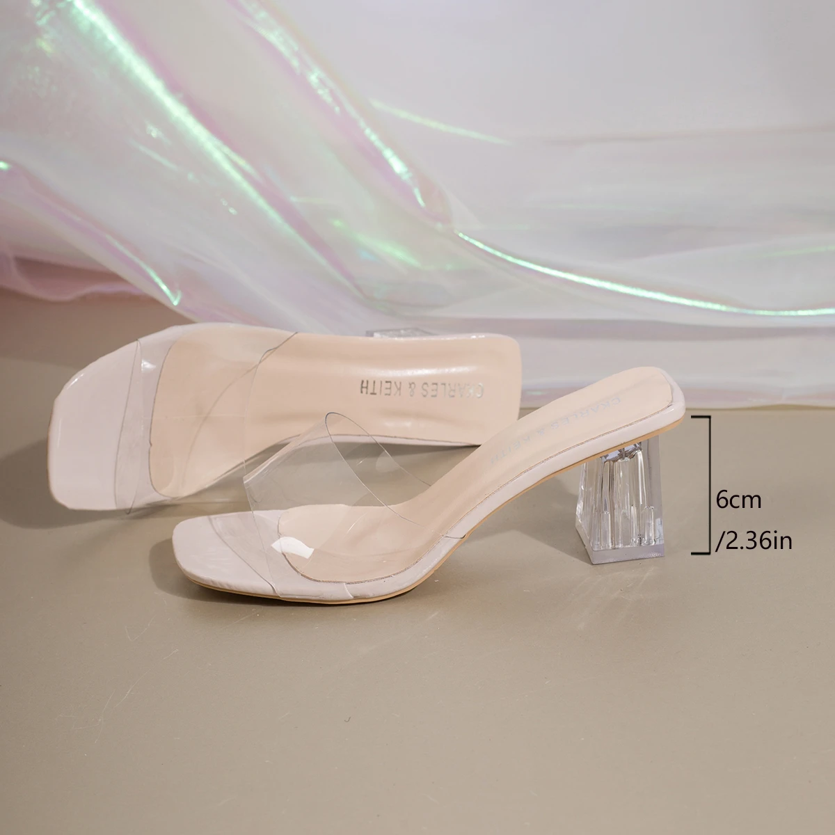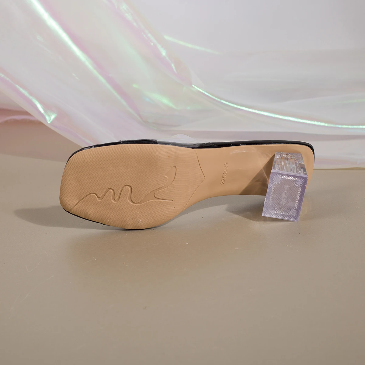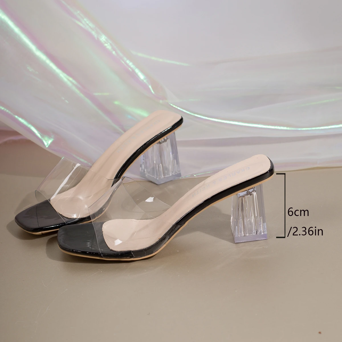 Color: black, Shoe Size: 35 - Fashionable and Elegant Women's High-heeled Sandals with Thick Heels and Square Heads, New Transparent Casual Versatile Sandals