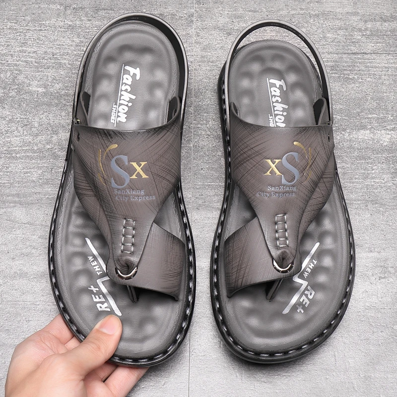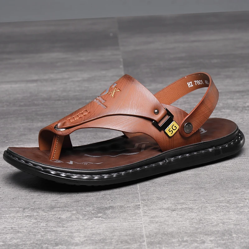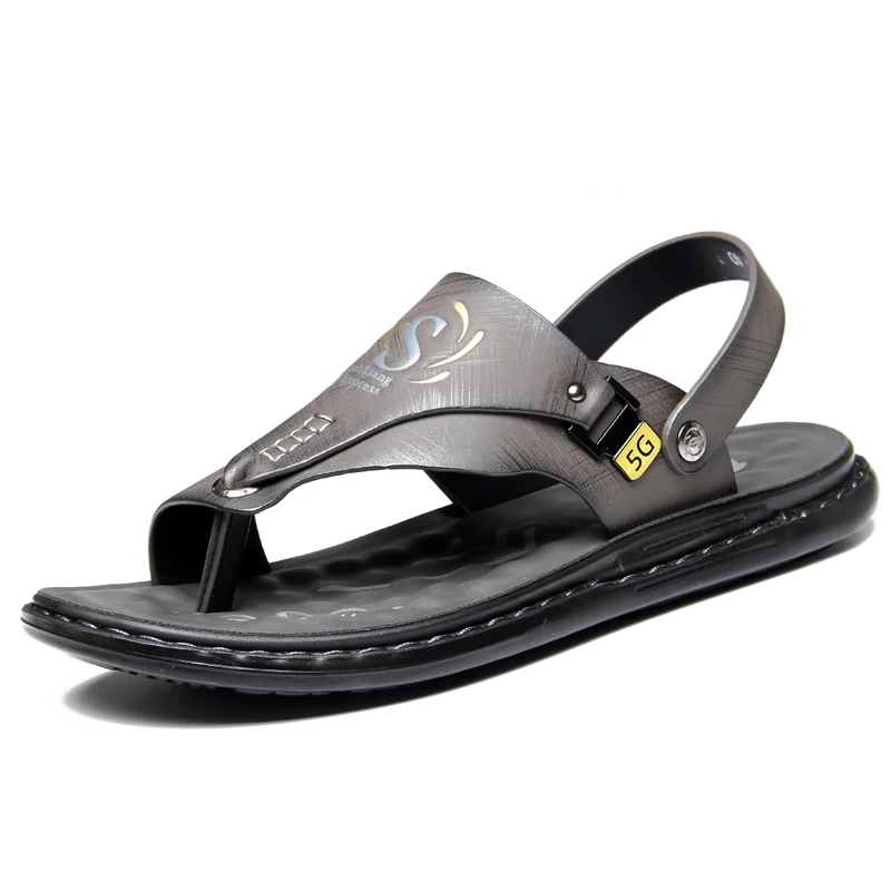 Color: black, Shoe Size: 45 - Summer Men Sandals Casual Genuine Leather Leisure Sandals Designer Shoes Men
