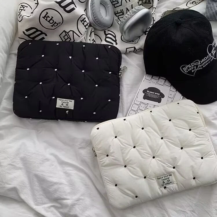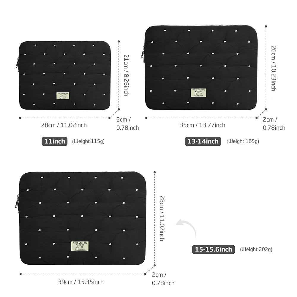 Color: black, Size: 15.6-inch - Laptop bag for macbook air 13 case 13-14 Inch puffy notebook pouch 15-16Inch Cute laptop sleeve 9-11 Inch Tablet Sleeve girl bag