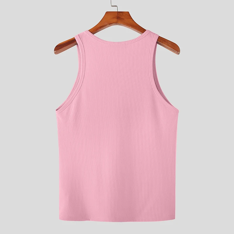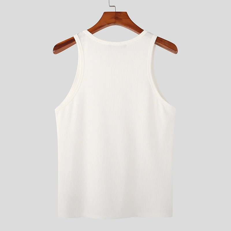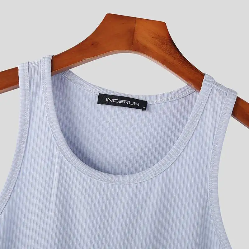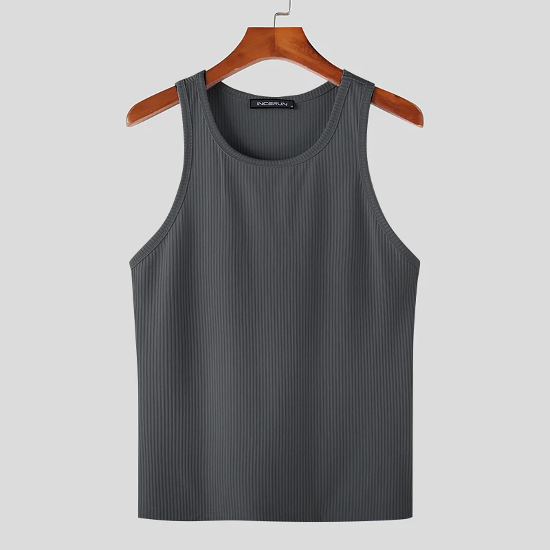 Color: black, Size: 5XL - INCERUN Men Tank Tops Solid Color O-neck Sleeveless Streetwear Summer Casual Vests Skinny 2023 Fashion Leisure Men Clothing 5XL