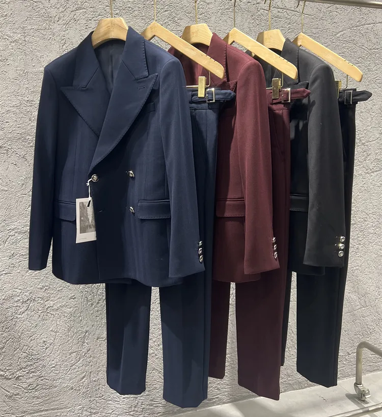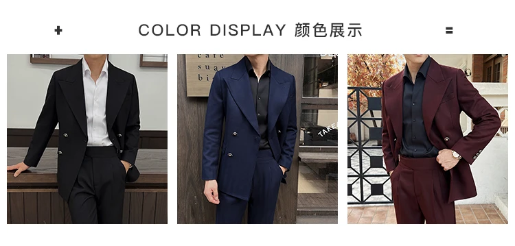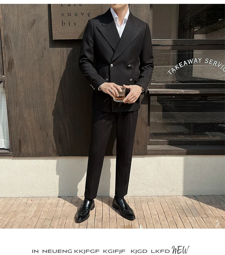 Color: black, Size: L - 2Pieces Jackets+Pants Design High Quality Men's Set Elegant Fashion Double Breasted Thick Wedding Dress Blazers And Trousers Set