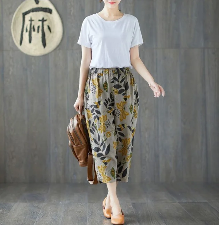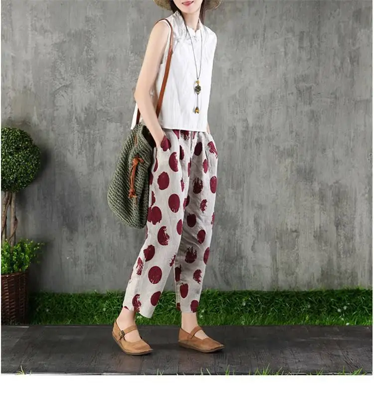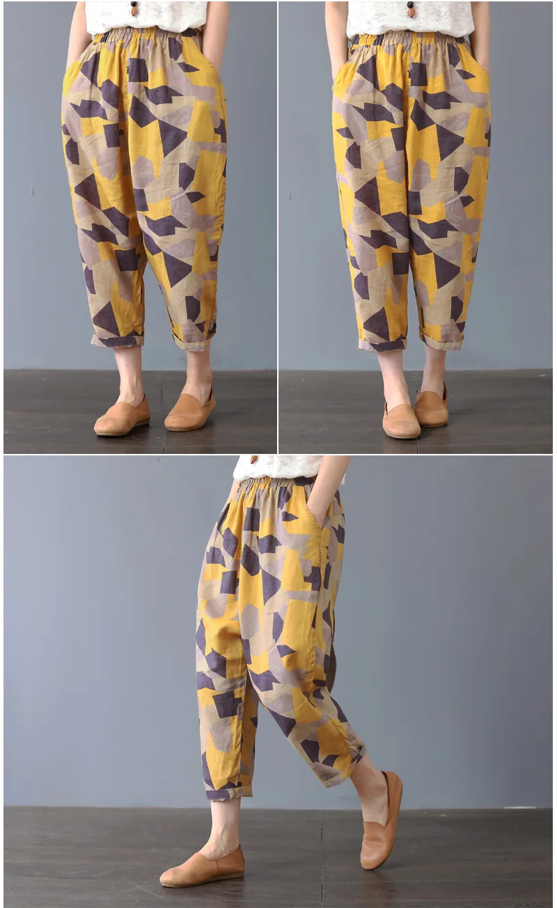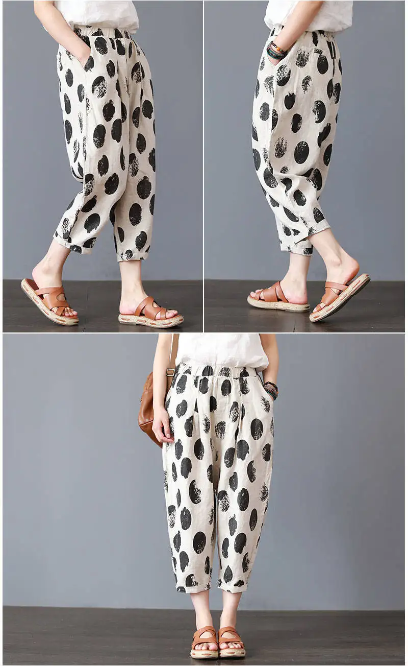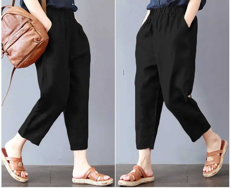 Color: black, Size: L - Cotton and Linen Pants for Women Summer Printing Harem Pants Female Mother Loose Retro Fashion Women's Ankle Length Pants