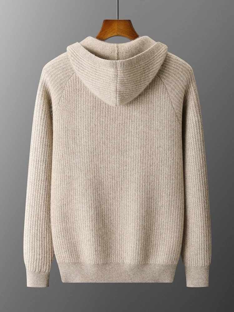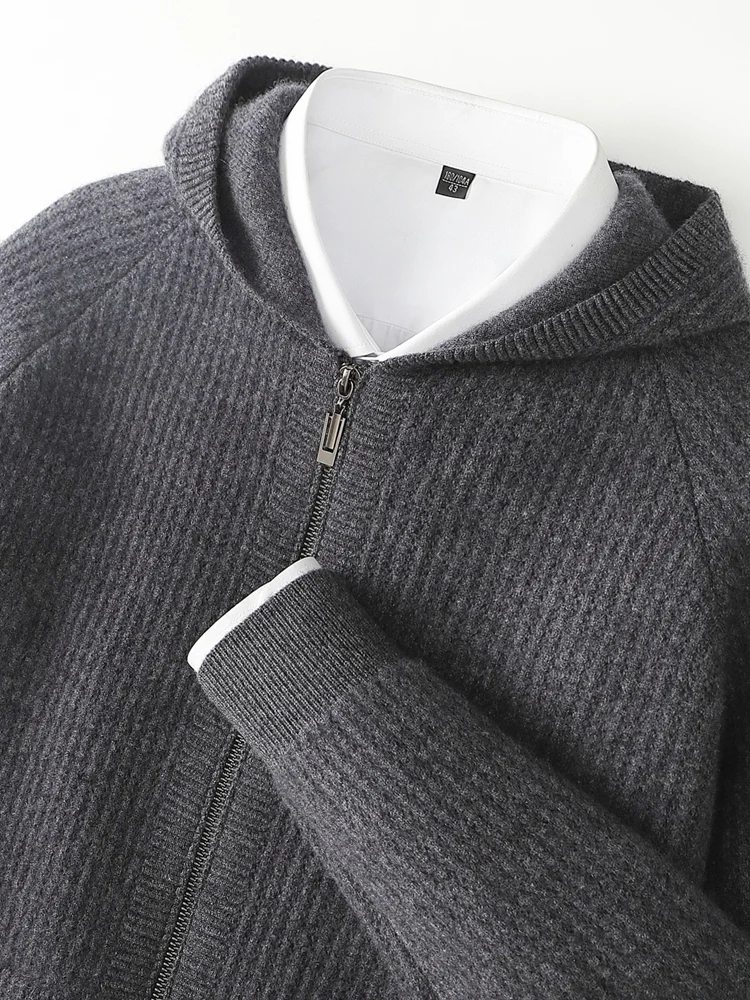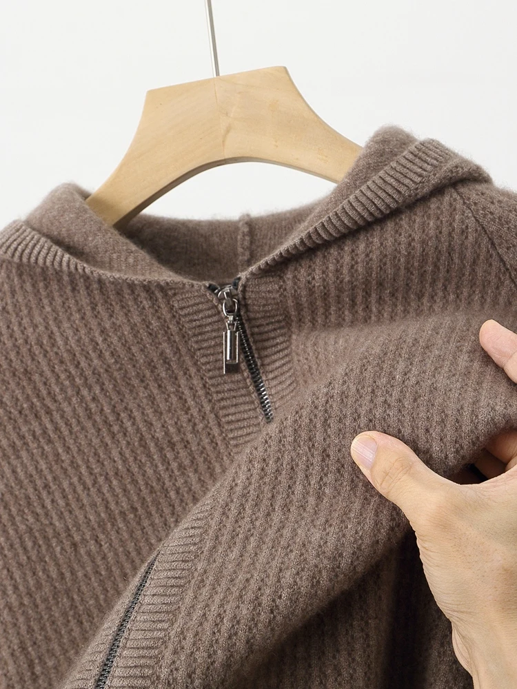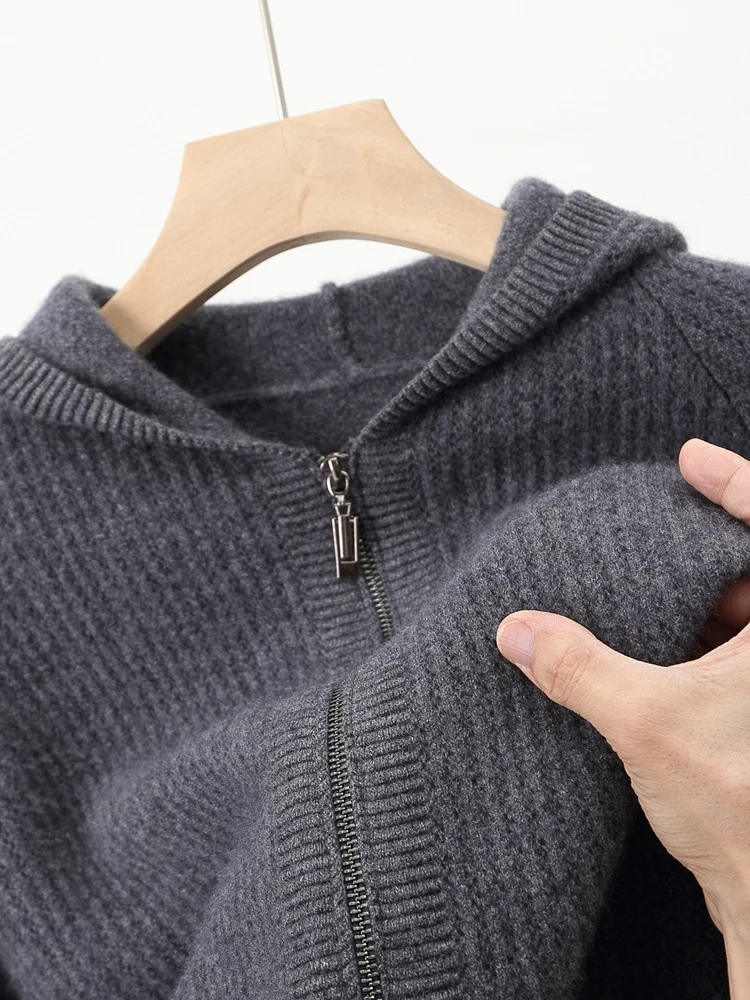 Color: black, Size: L - Daily Clothes Autumn Winter Sweater Men's Coat 100% Merino Wool Sweater Cardigan Knitted Jacket Thicked Hooded Outerwears Trend