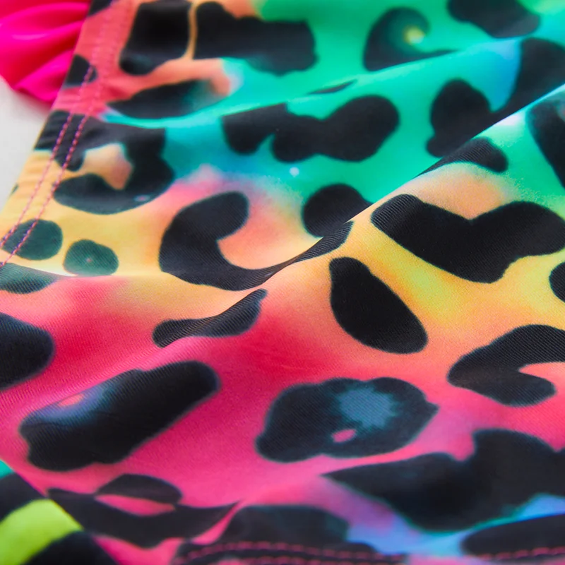 One-piece girls swimsuit, fish scales Designed with a cute ruffle hips.