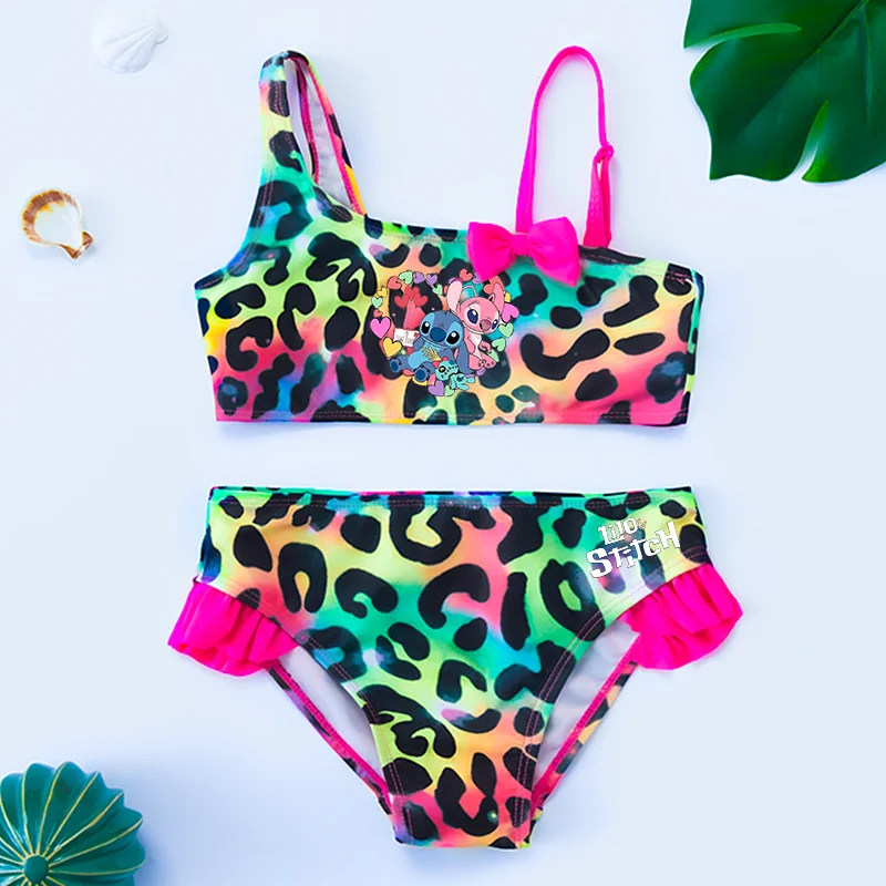 Color: black, Size: L - Lilo Stitch Gilrs Bow Bikini Set Trendy Two-Piece Swimsuits for Summer Stylish Beachwear Pool Fashion Bathing Suits 3-12Y