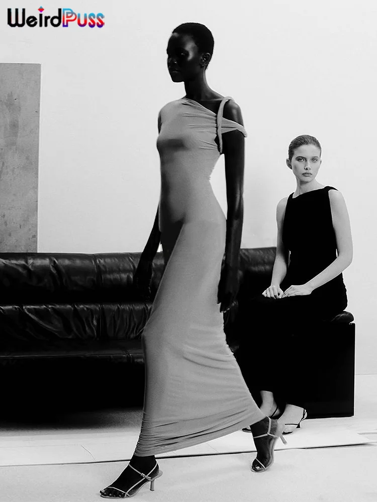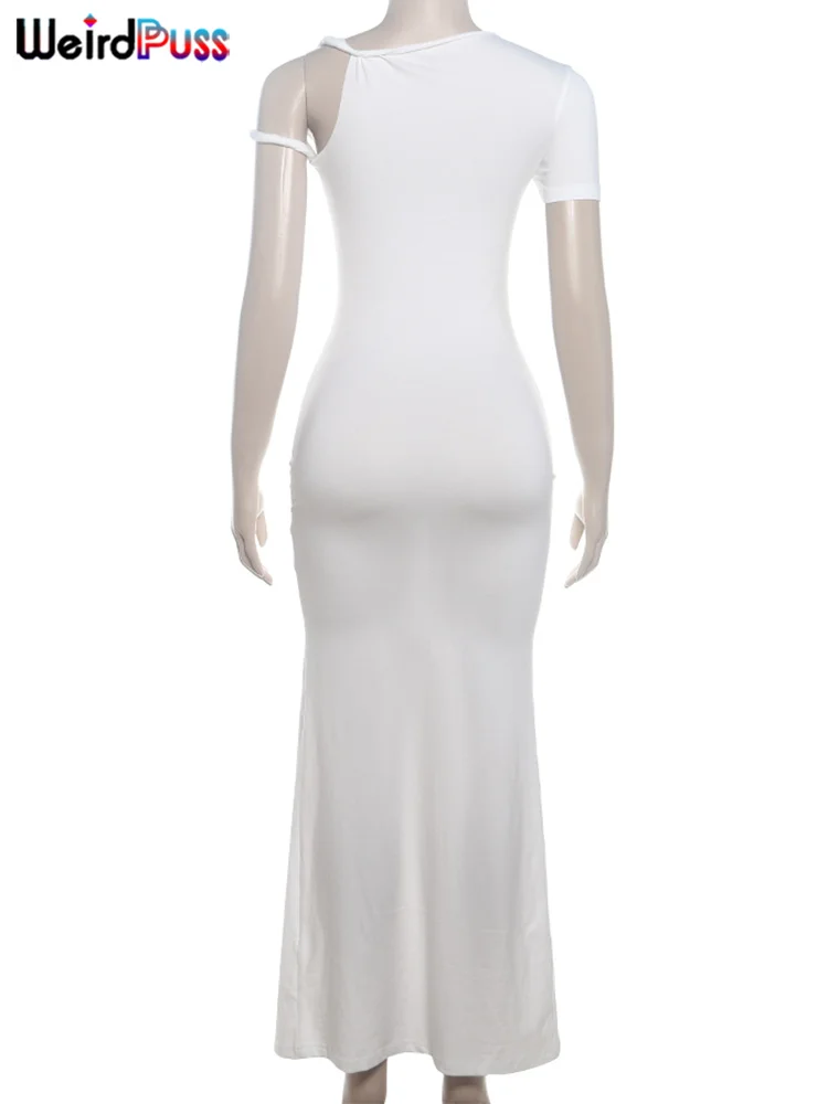Color: black, Size: M - Weird Puss Bandage Dress Woman Summer Sexy Irregular Solid Sheath Chic Stretch Body-Shape Smooth Birthday Party Elegant Bodycon