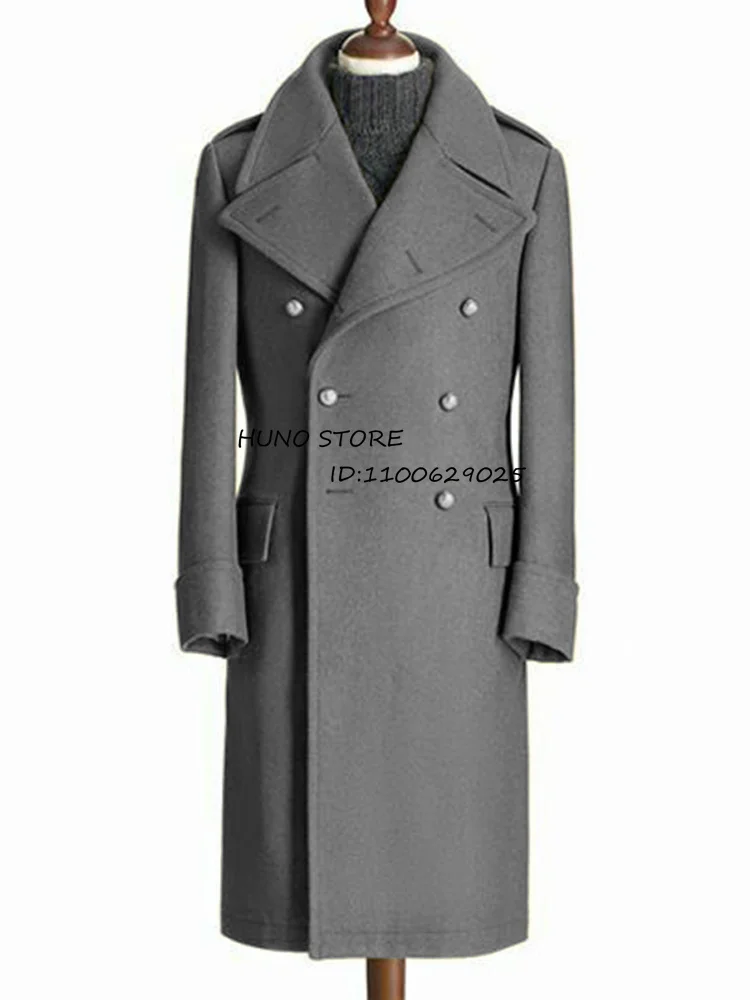 Color: black, Size: M - Windbreak Men's Jacket Wool Long Coat Lapel Double Breasted Men's Trench Coats Windbreakers Jackets Man Winter 2023 Martens Male