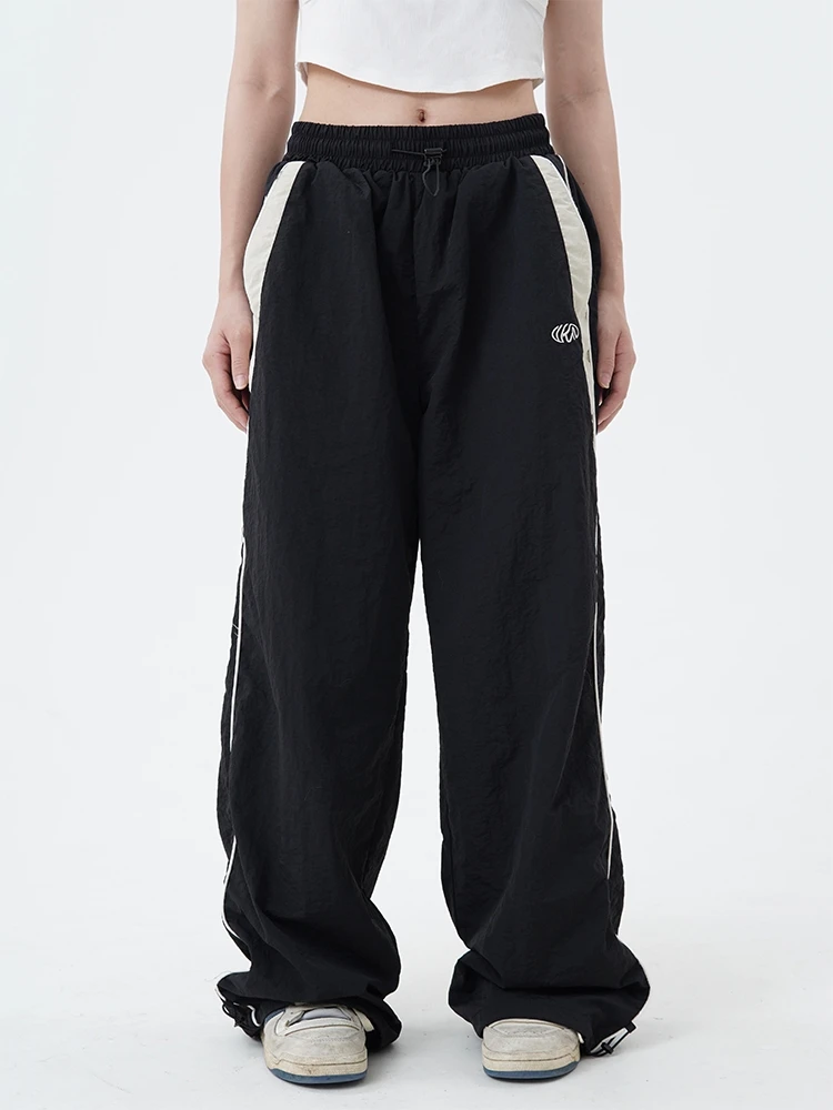 Color: black, Size: M - Women Spring Retro Solid Loose Drawstring Trousers Casual Joggers Baggy Wide Leg Sweatpants Mid Waist Sporty Y2k Female Clothes