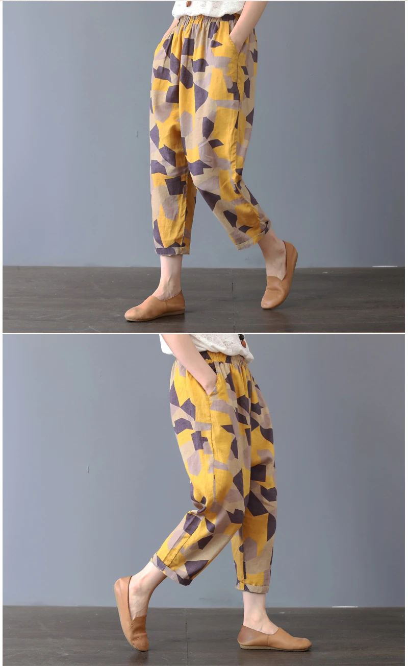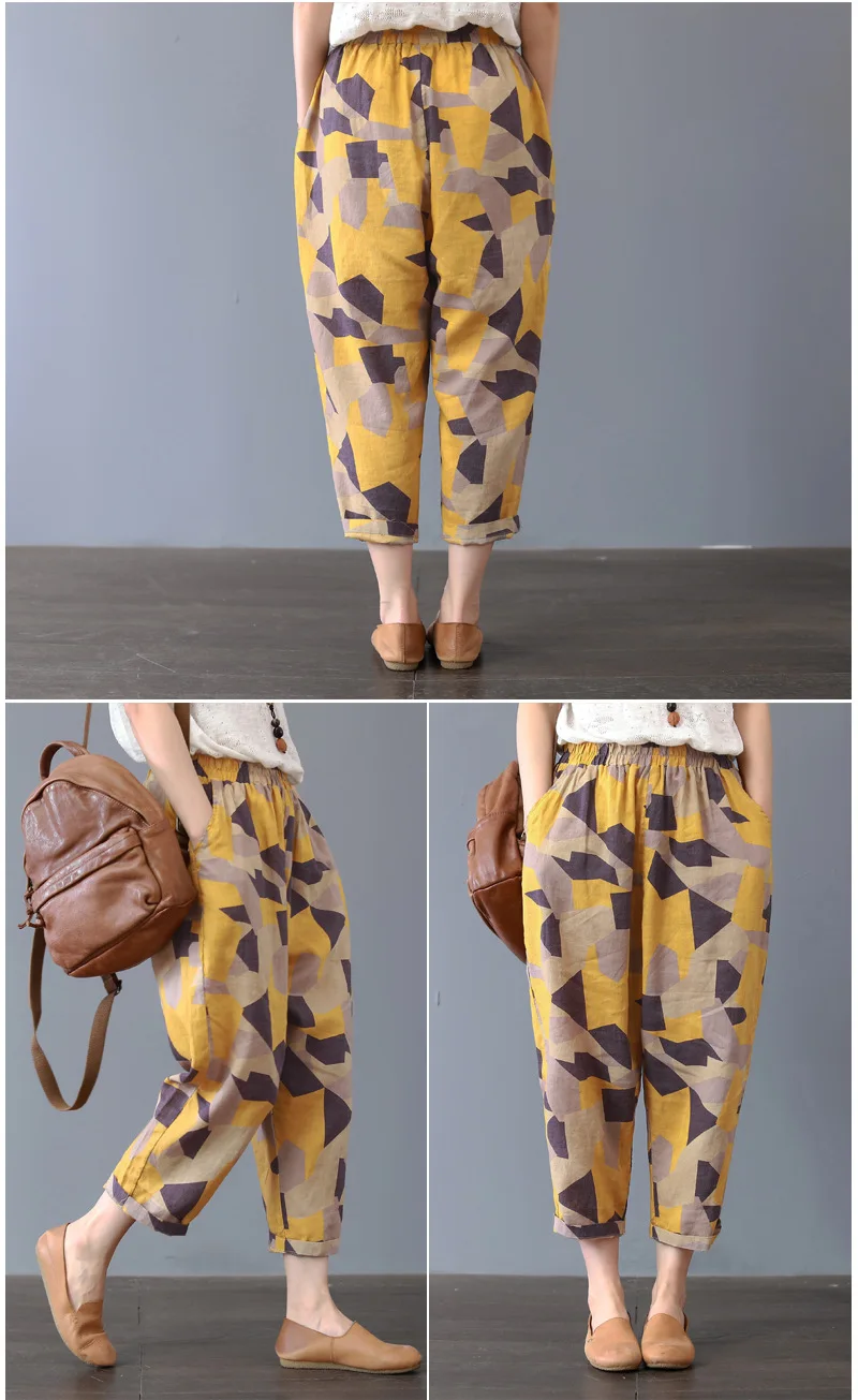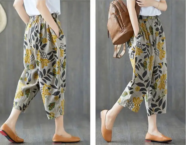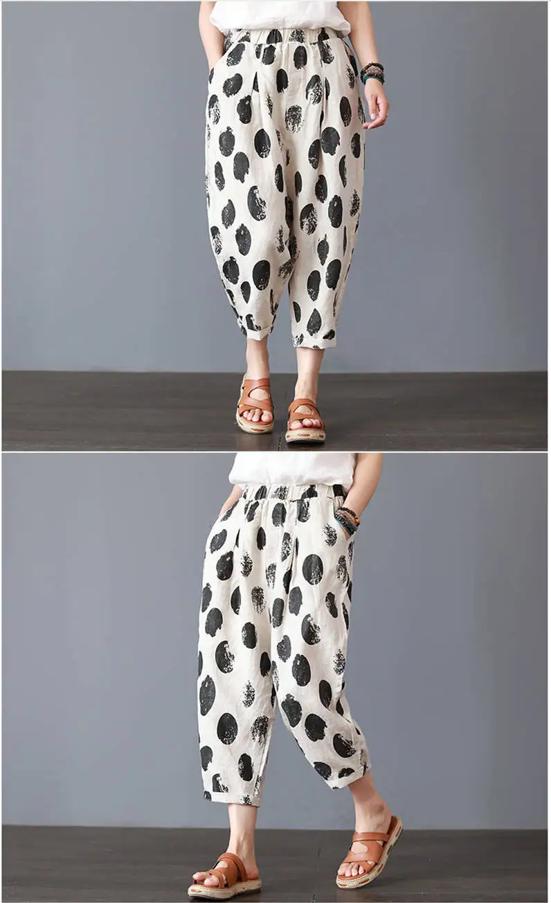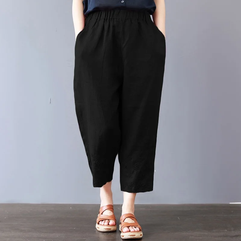 Color: black, Size: S - Cotton and Linen Pants for Women Summer Printing Harem Pants Female Mother Loose Retro Fashion Women's Ankle Length Pants