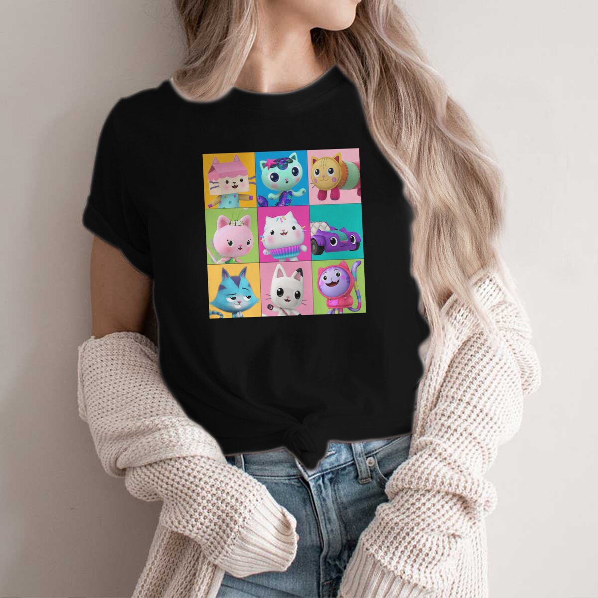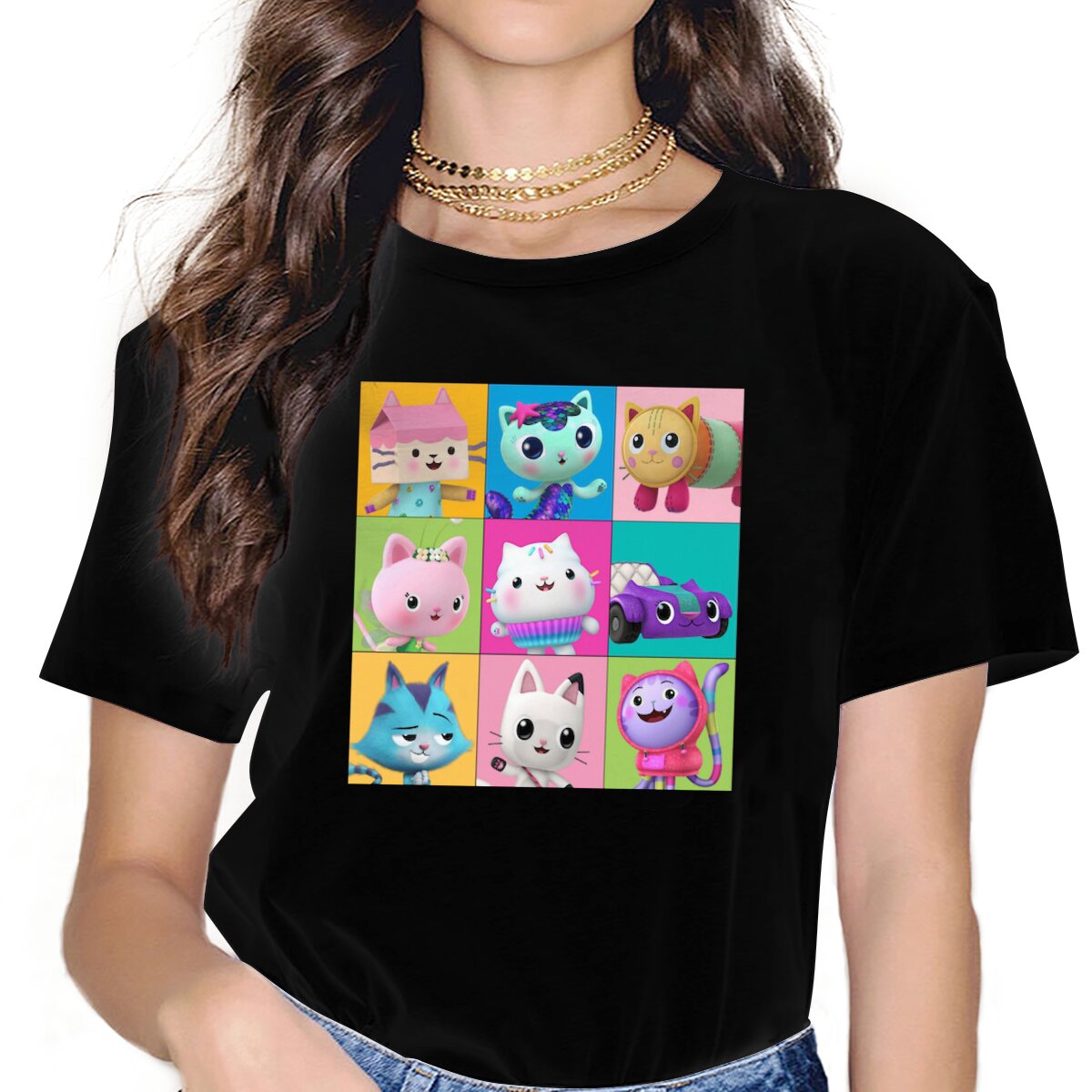 Color: black, Size: S - Essential Style Polyester TShirt Gabby's Dollhouse Gabby Cartoon Comfortable Hip Hop Gift Idea T Shirt Stuff