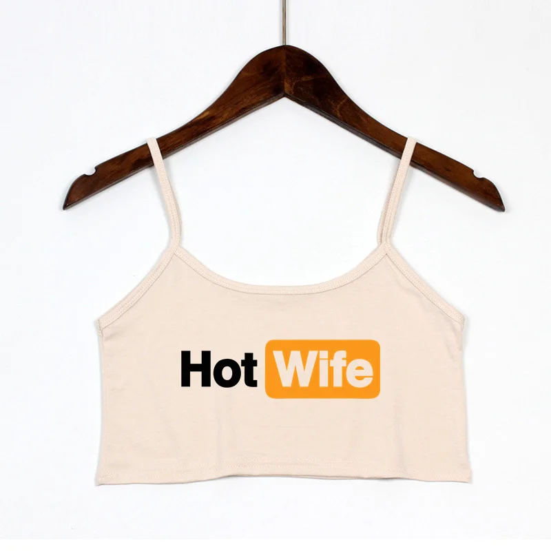 Color: black, Size: S - Funny HOT WIFE Letters Print New Sexy Crop Top Summer Women's Sexy Elastic Cotton Camis Sleeveless Short Tank Top Bar Women