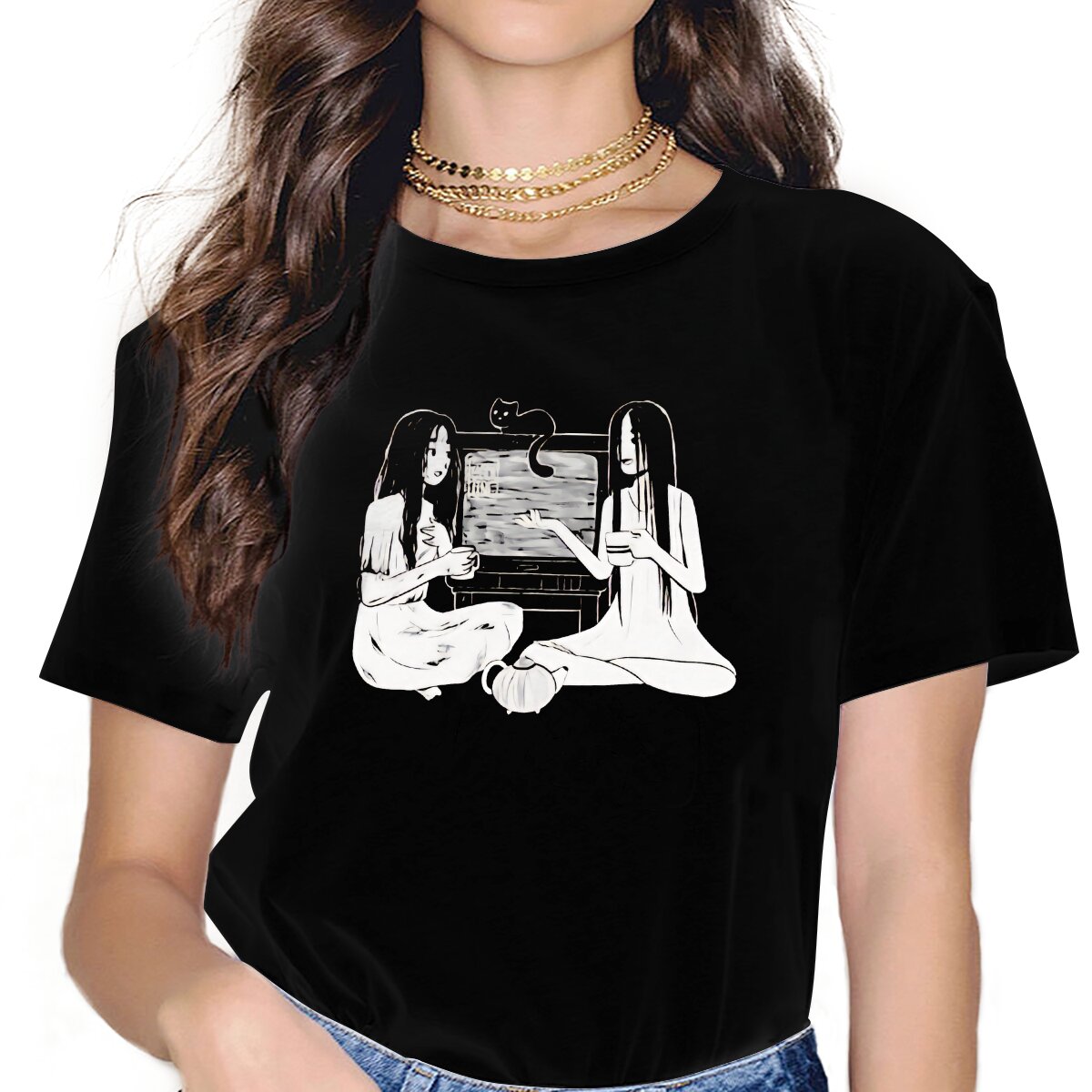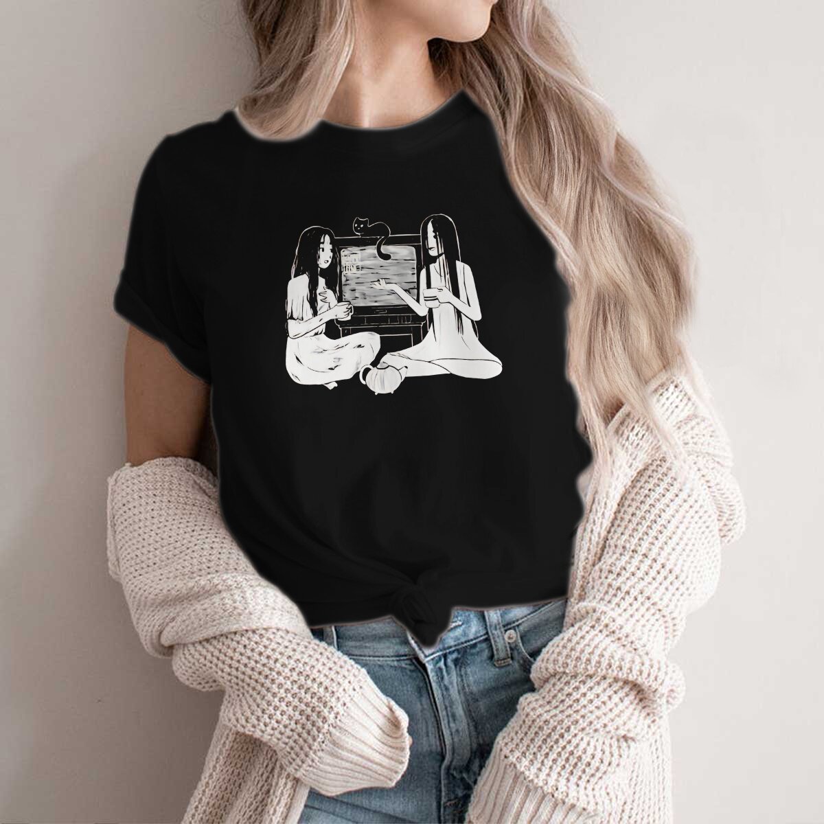 Color: black, Size: S - Sadako And Kayako Tea Time Newest Polyester TShirts Ju On The Grudge Movie Momen Graphic Tops T Shirt O Neck