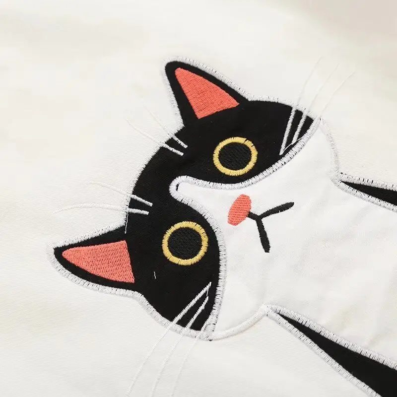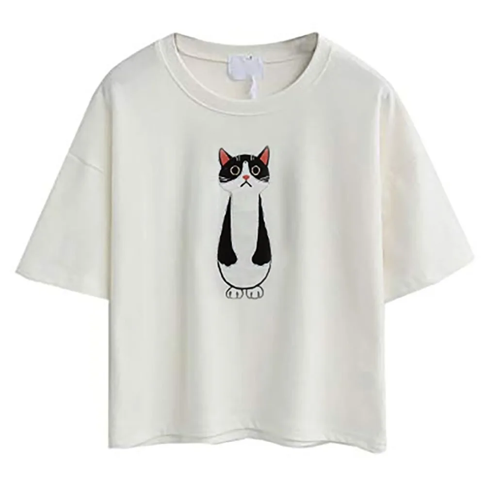 2019 Summer Cotton Short Sleeved Crop Top T-shirt Femme Embroidered Cat T shirts Cartoon Women Fashion Cactus Top Tee T Shirt