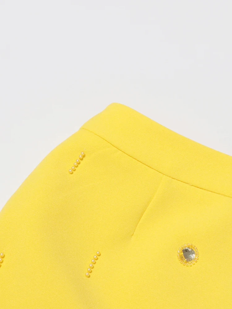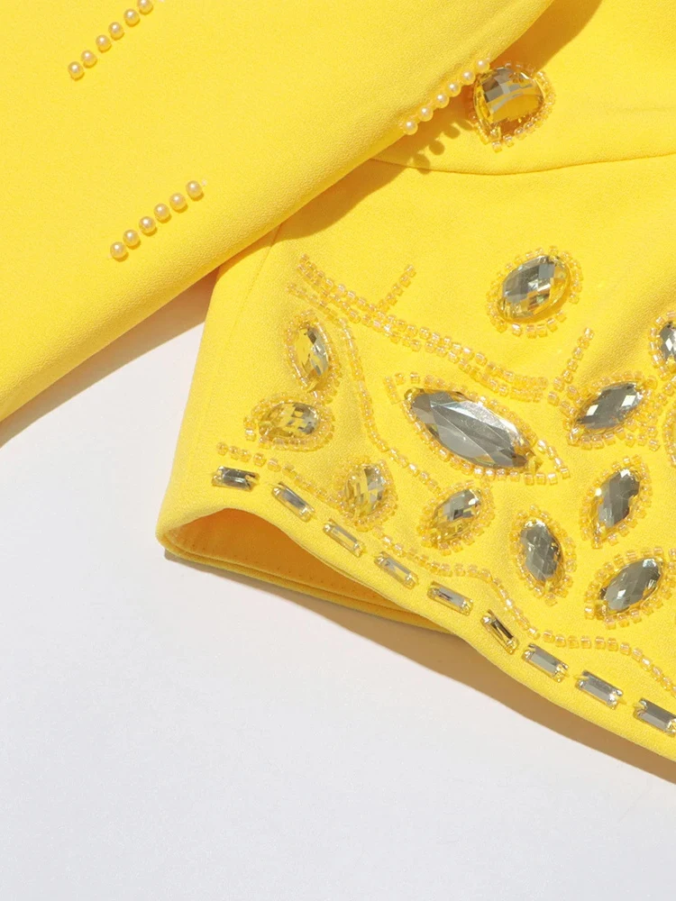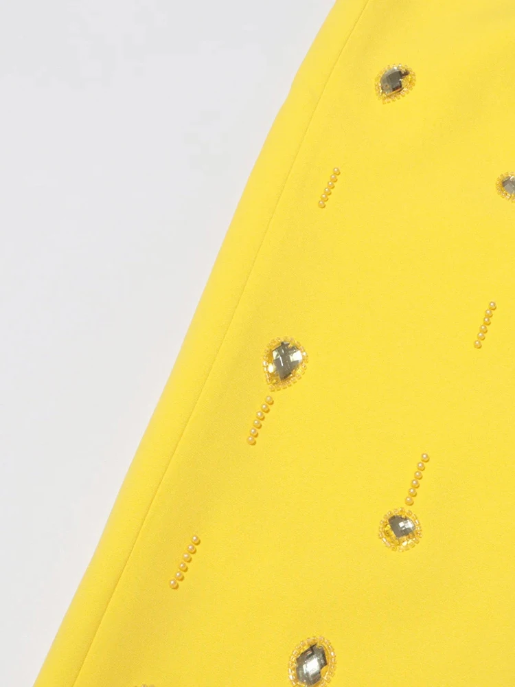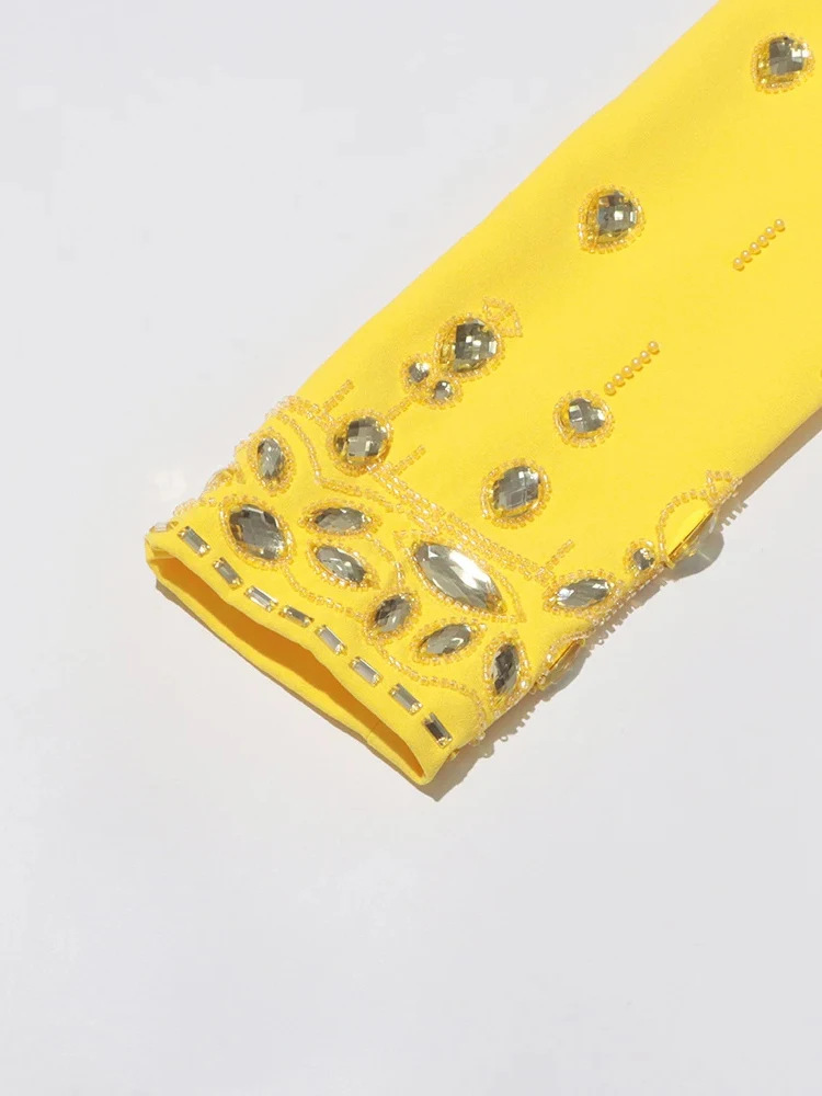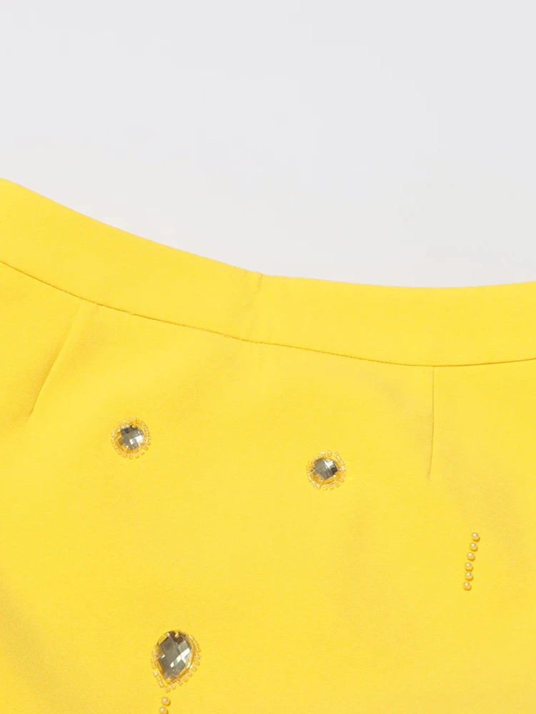 Color: black, Size: S - Spliced Diamonds Two Piece Set For Women Stand Collar Long Sleeve Tops High Waist Skirt Elegant Chic Set Female Fashion New