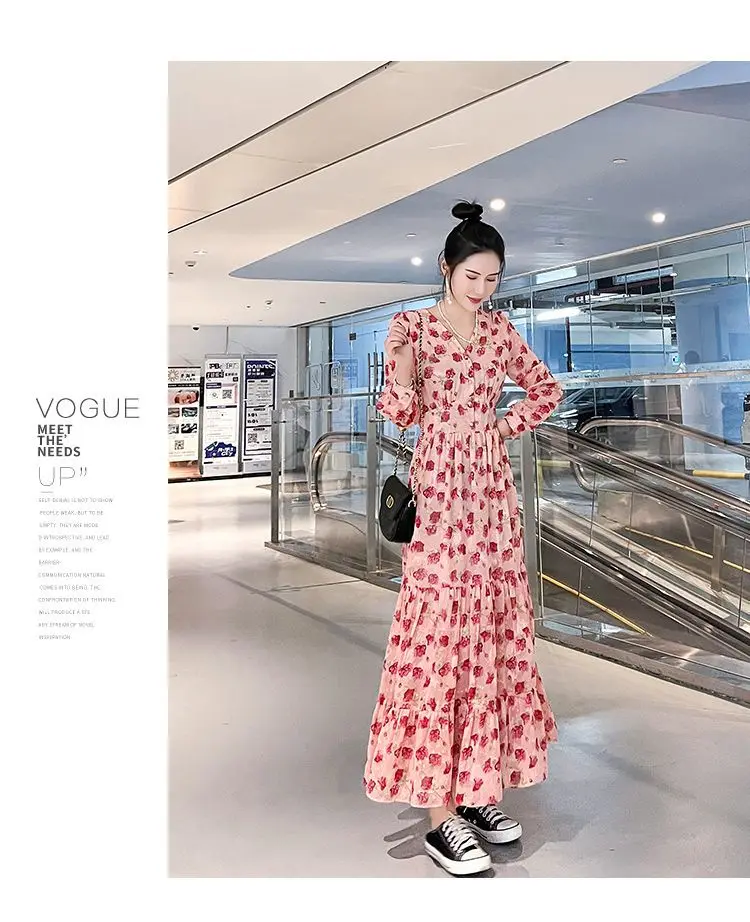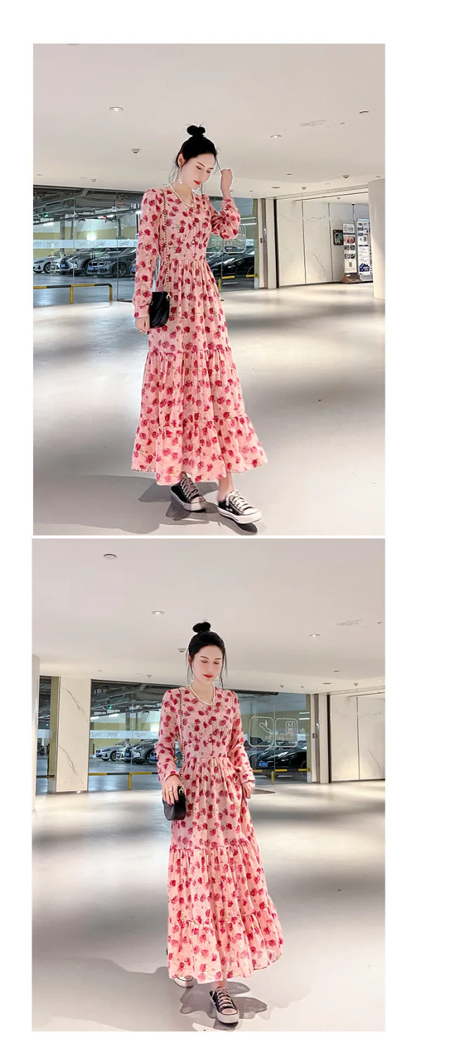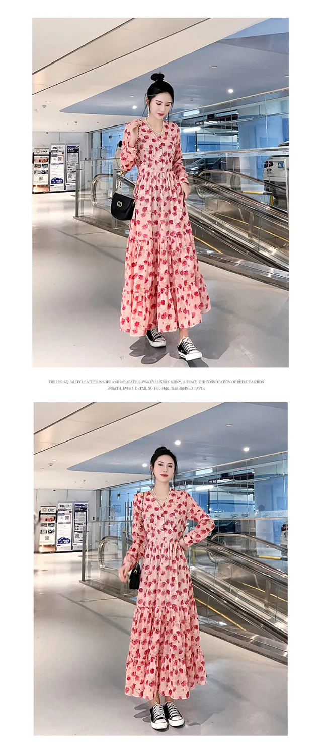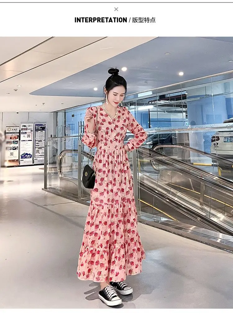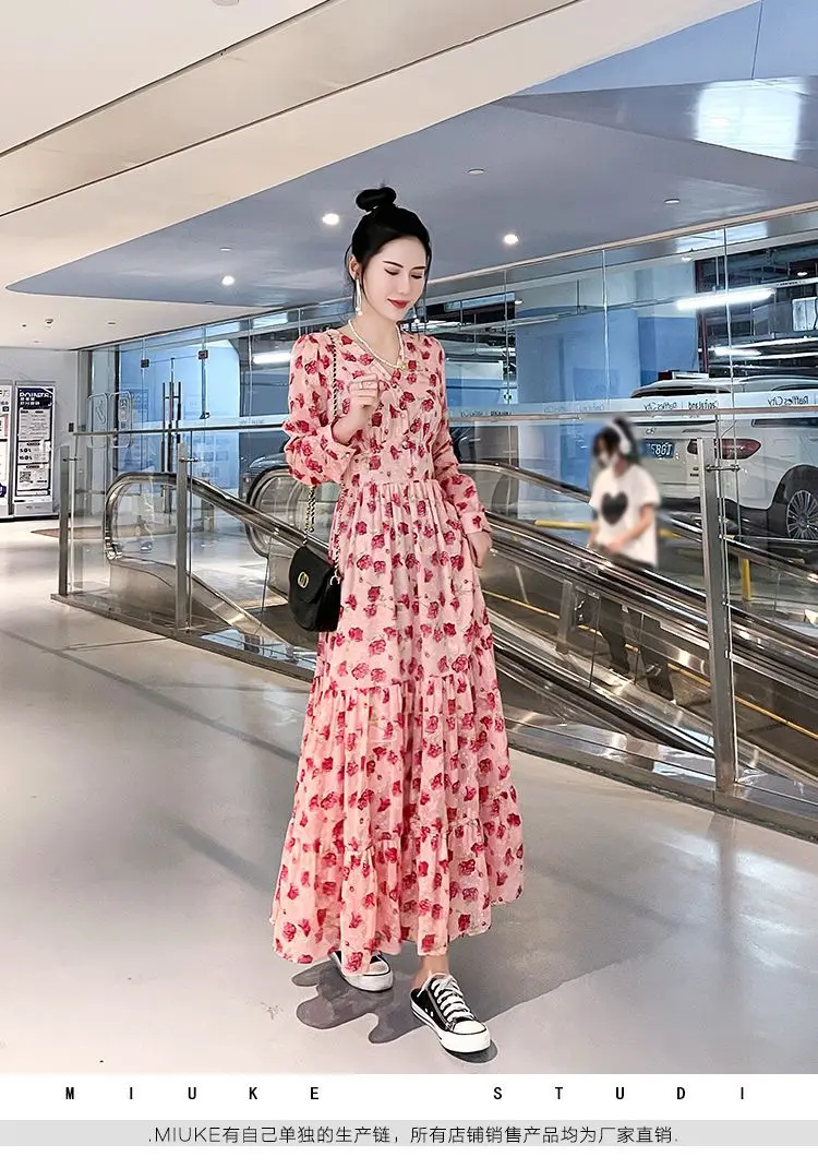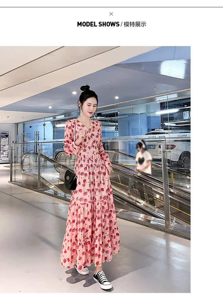 Color: black, Size: XL - Chiffon floral dress 2024 spring/summer new high waisted slimming knee length skirt light luxury French style large skirt 3FWF