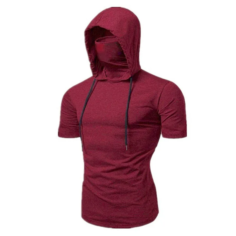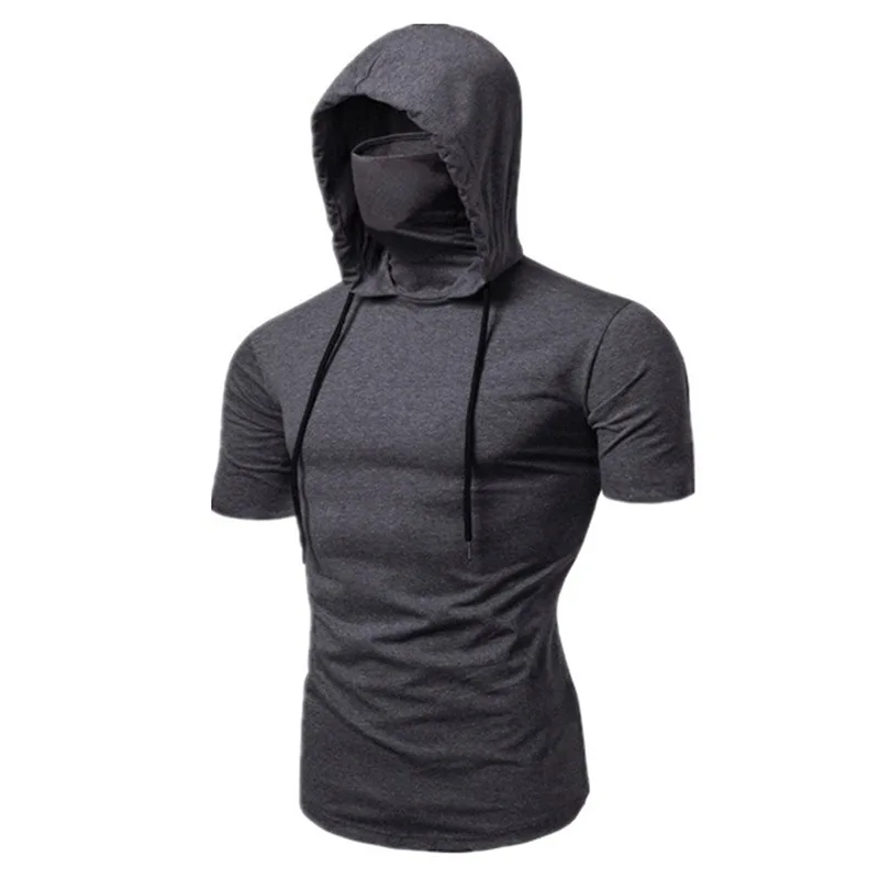 Color: black, Size: XXL - Mens Gym Thin Hoodie Short Sleeve Hoodies With Mask Sweatshirt Casual Splice Large Mask Hoodie Sweatshirt Hooded Tops Cycling
