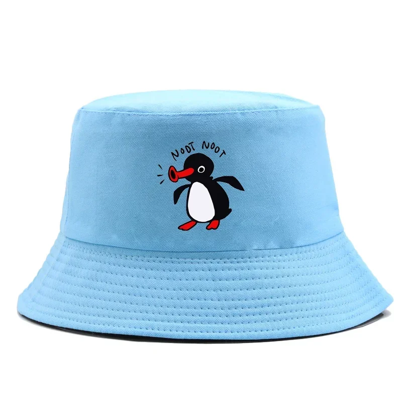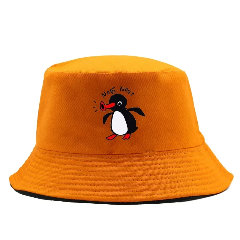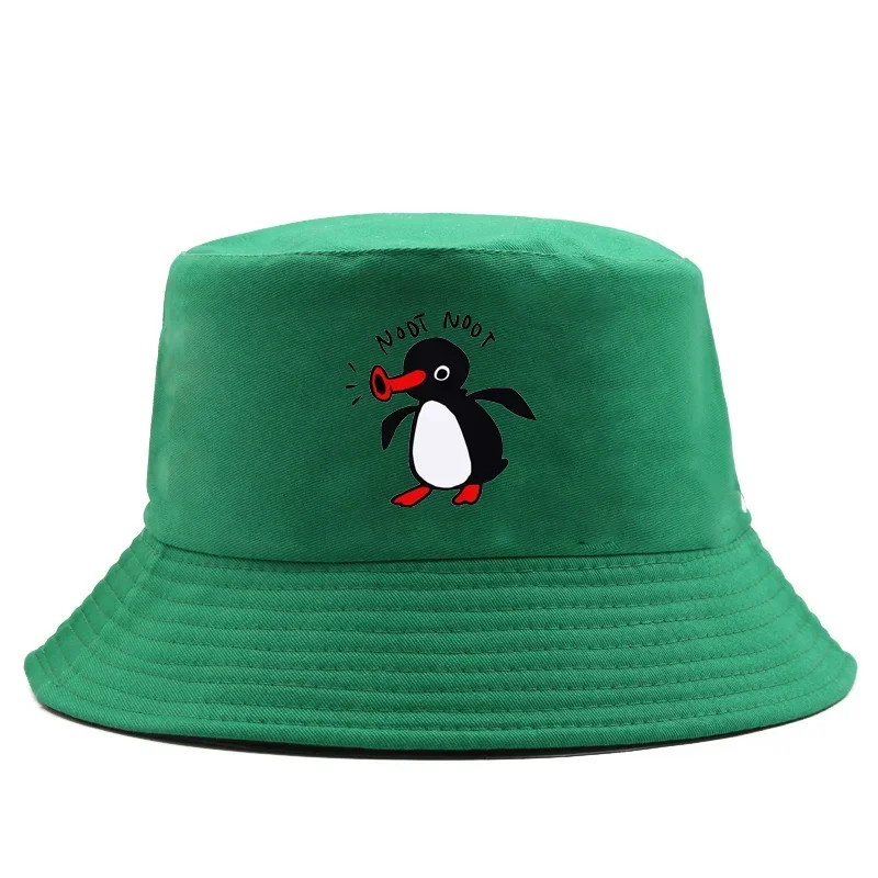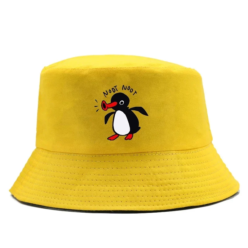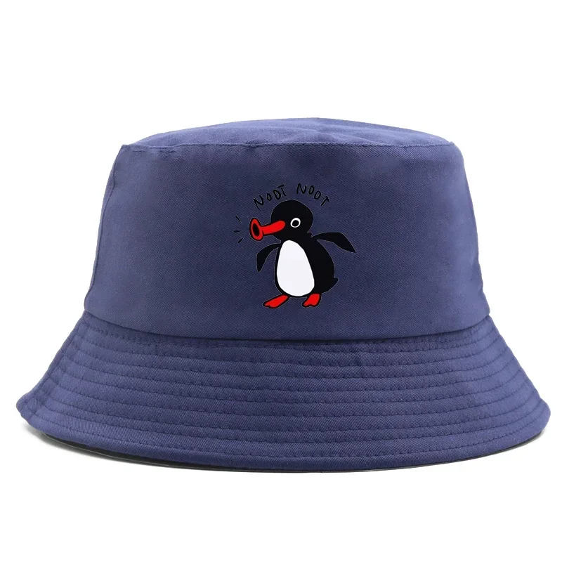 Color: Black - Summer Penguin Bucket Hat Reversible Bob Men Women Cotton Travel Beach Fisherman Hat Outdoor Sports Pull Up Bob Panama Sun Hat