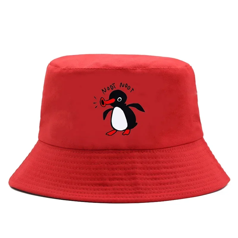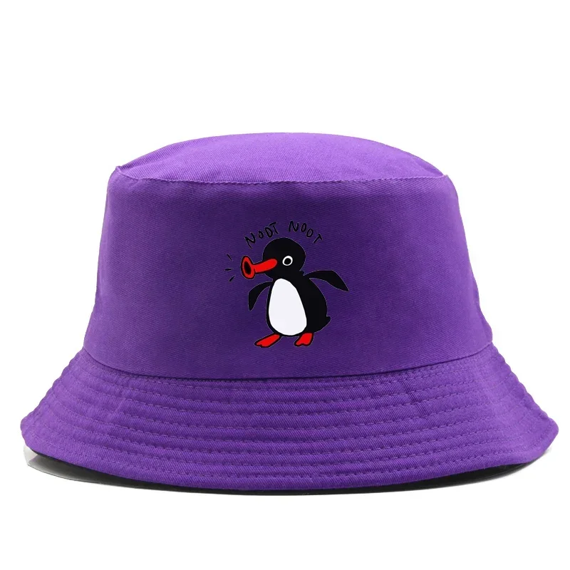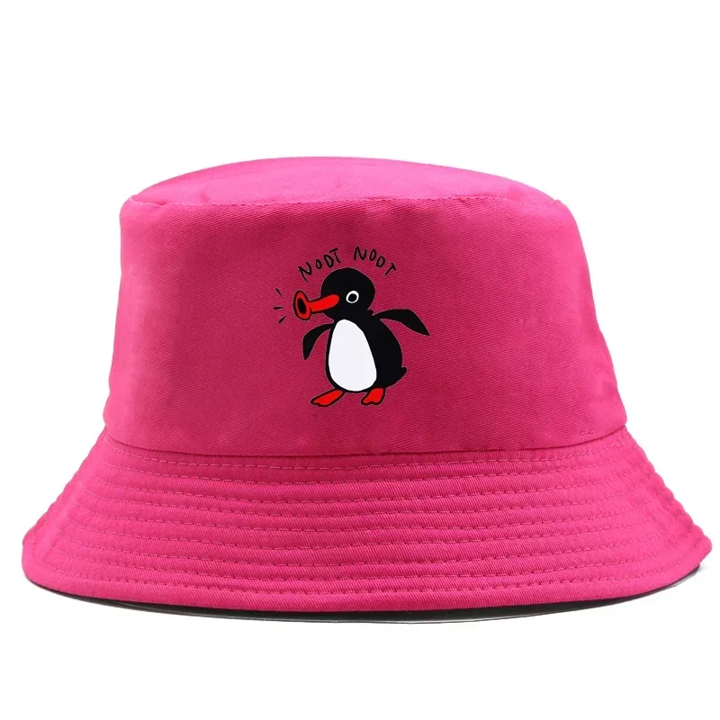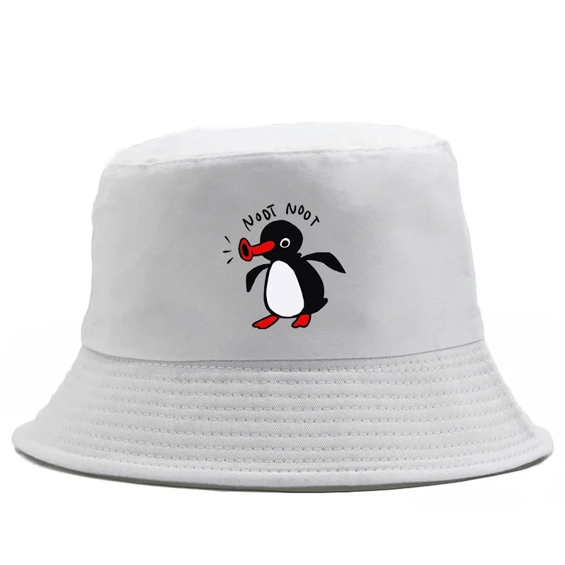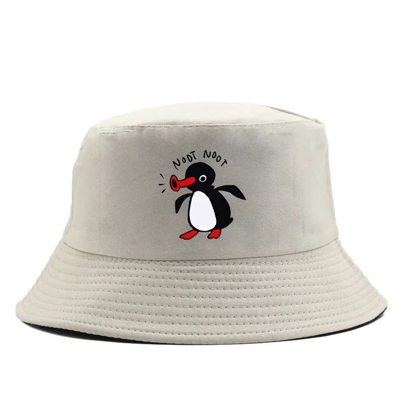 Color: Black - Summer Penguin Bucket Hat Reversible Bob Men Women Cotton Travel Beach Fisherman Hat Outdoor Sports Pull Up Bob Panama Sun Hat