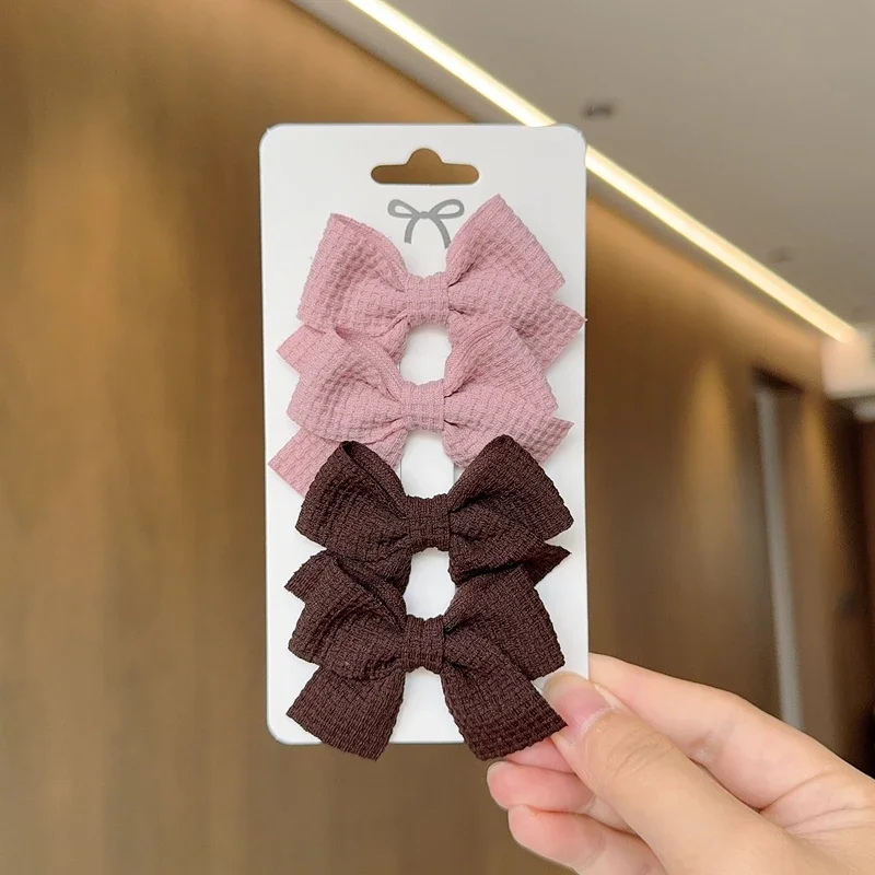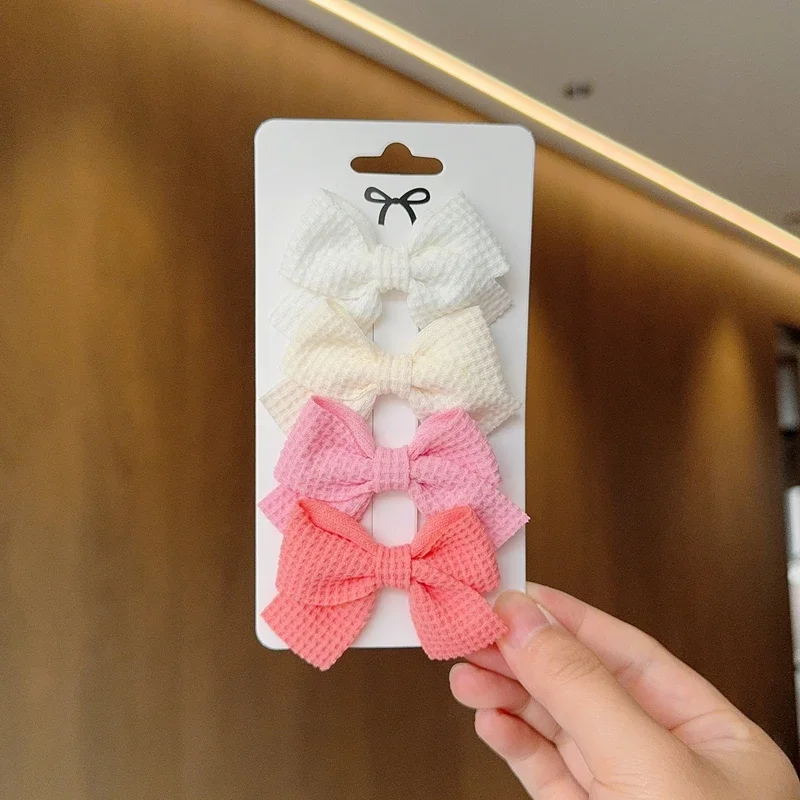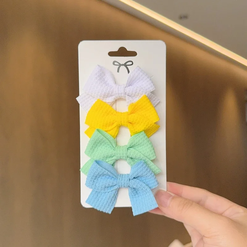 Color: Blue - 4PCS Soft Cotton Bow Hairpin Girl Sweet Plaid Design Hairpin Color Block Delicate Hairgripe Barrettes Kawaii Child Accessories