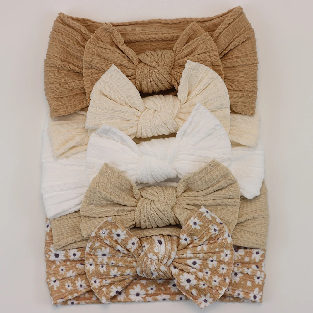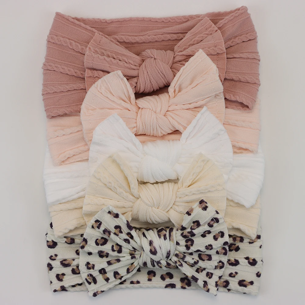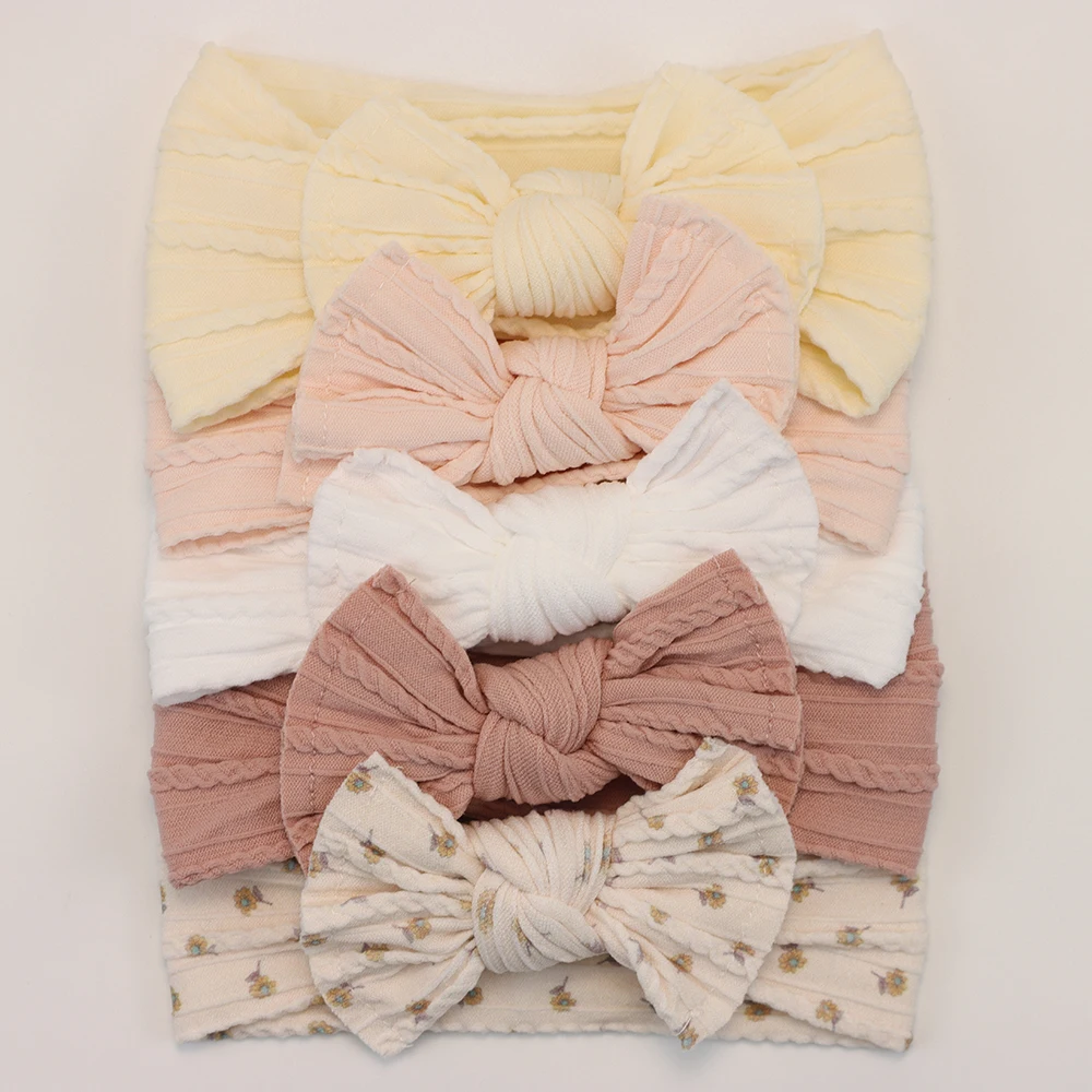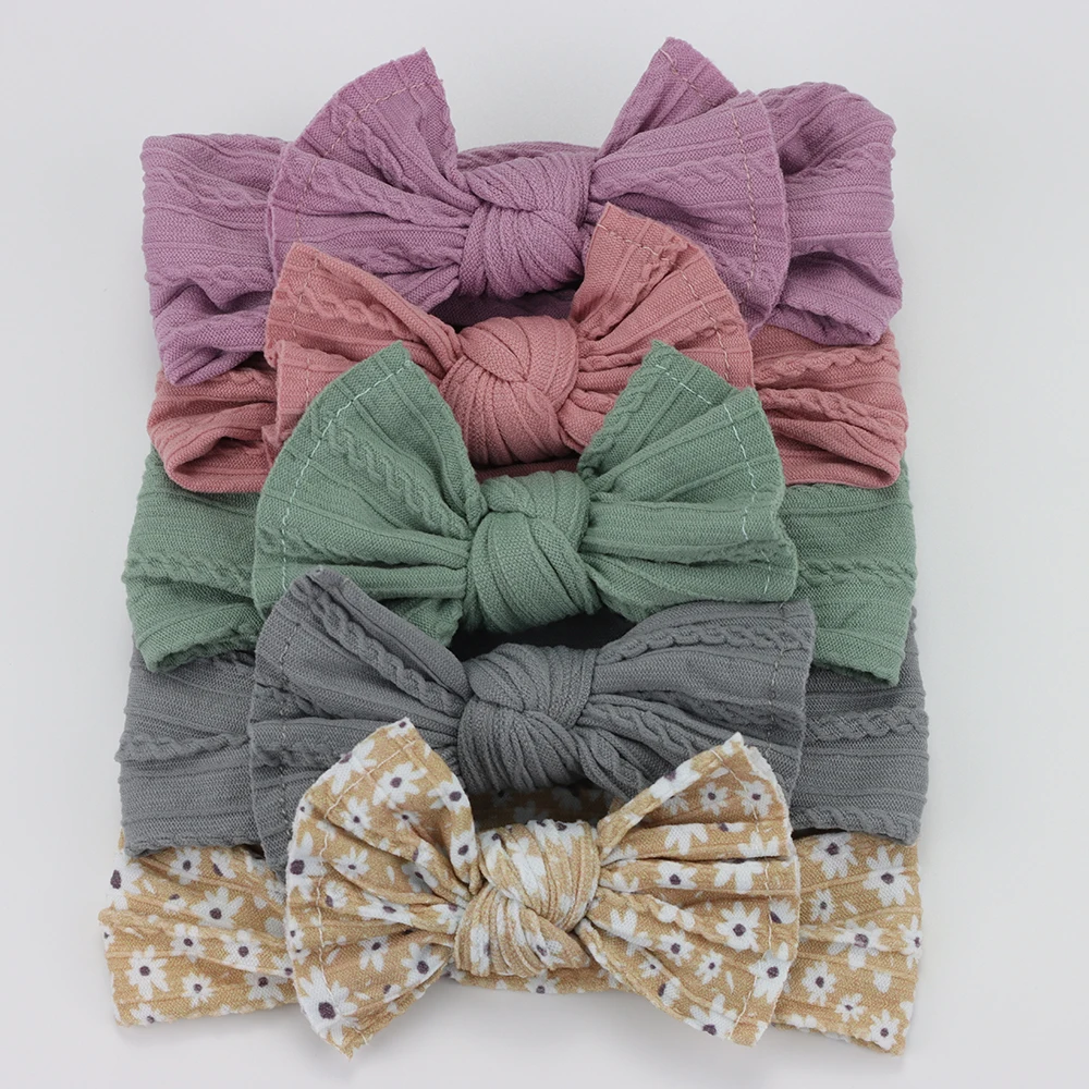 Color: Blue - 5pcs/Lot Cable Knit Bow Baby Headbands Elastic Nylon Baby Girl Headband For Children Turban Newborn Infant Kids Hair Accessories