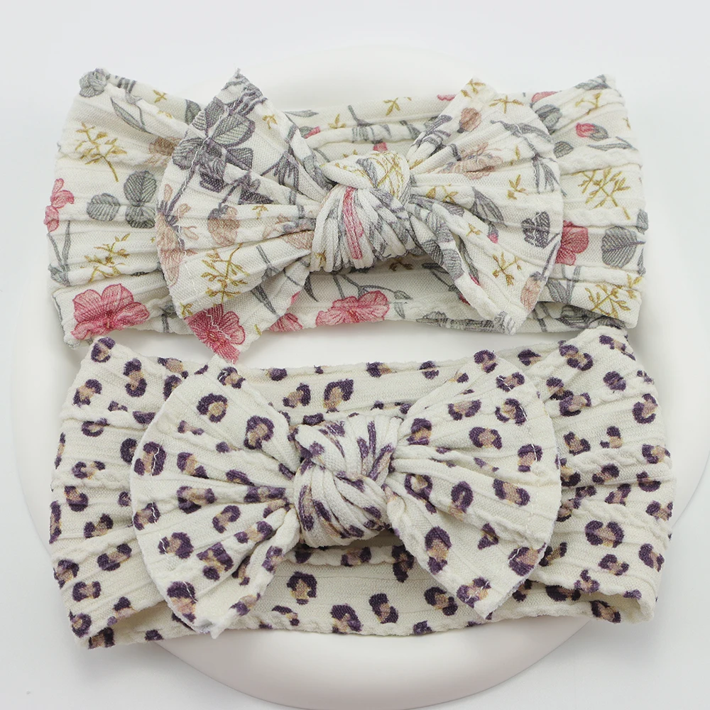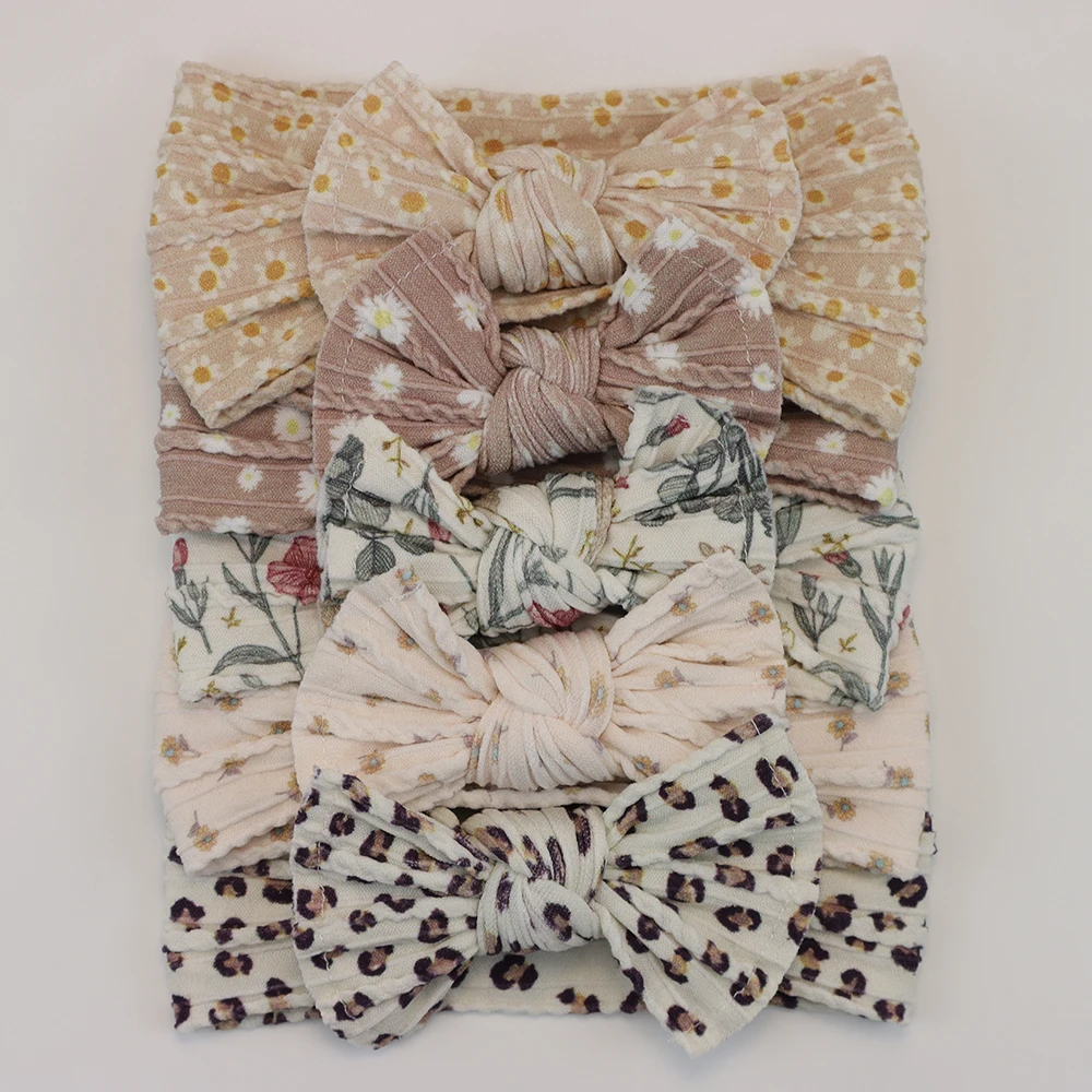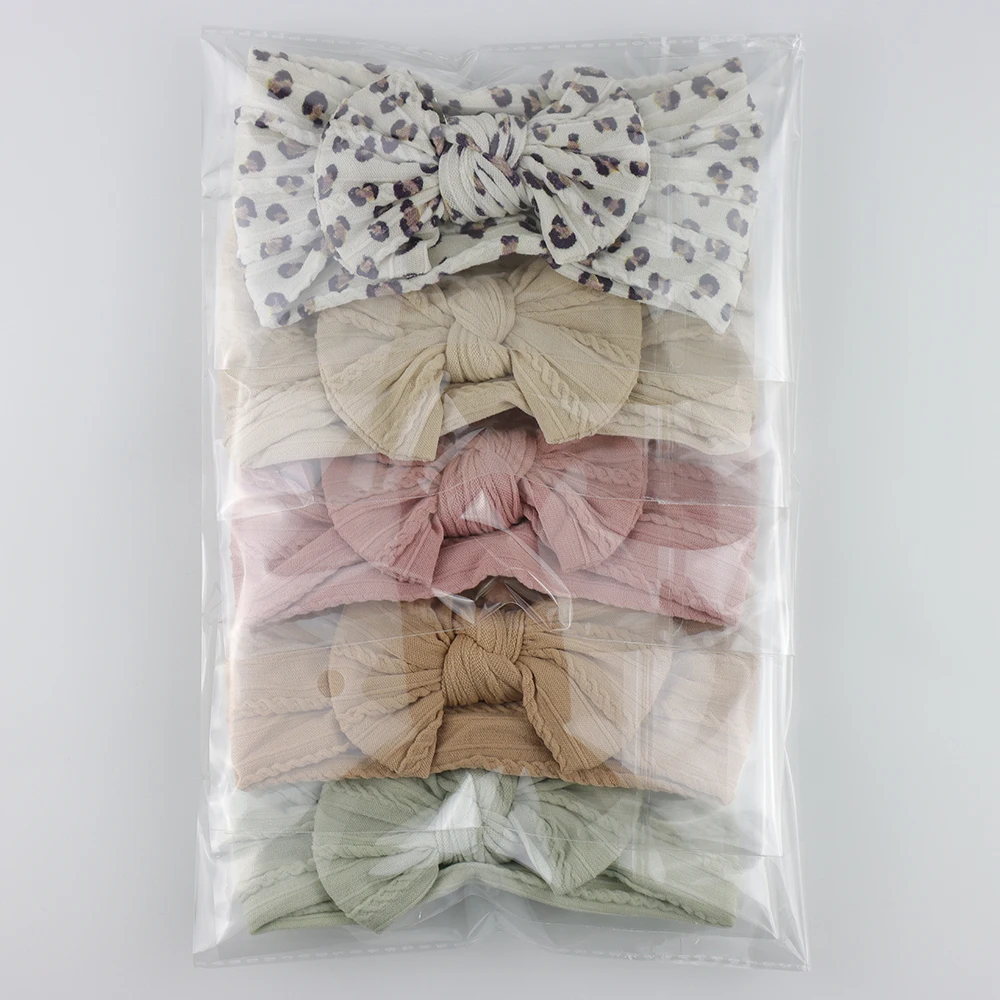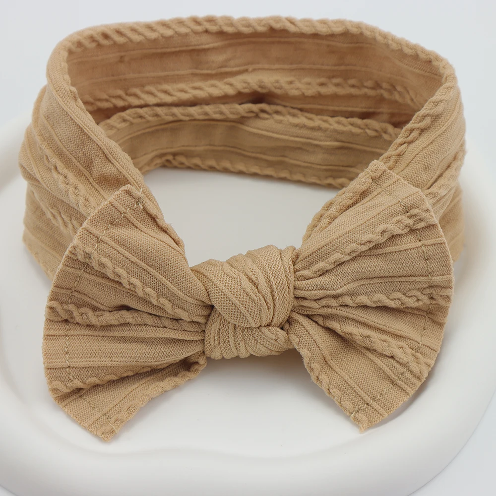 Color: Blue - 5pcs/Lot Cable Knit Bow Baby Headbands Elastic Nylon Baby Girl Headband For Children Turban Newborn Infant Kids Hair Accessories