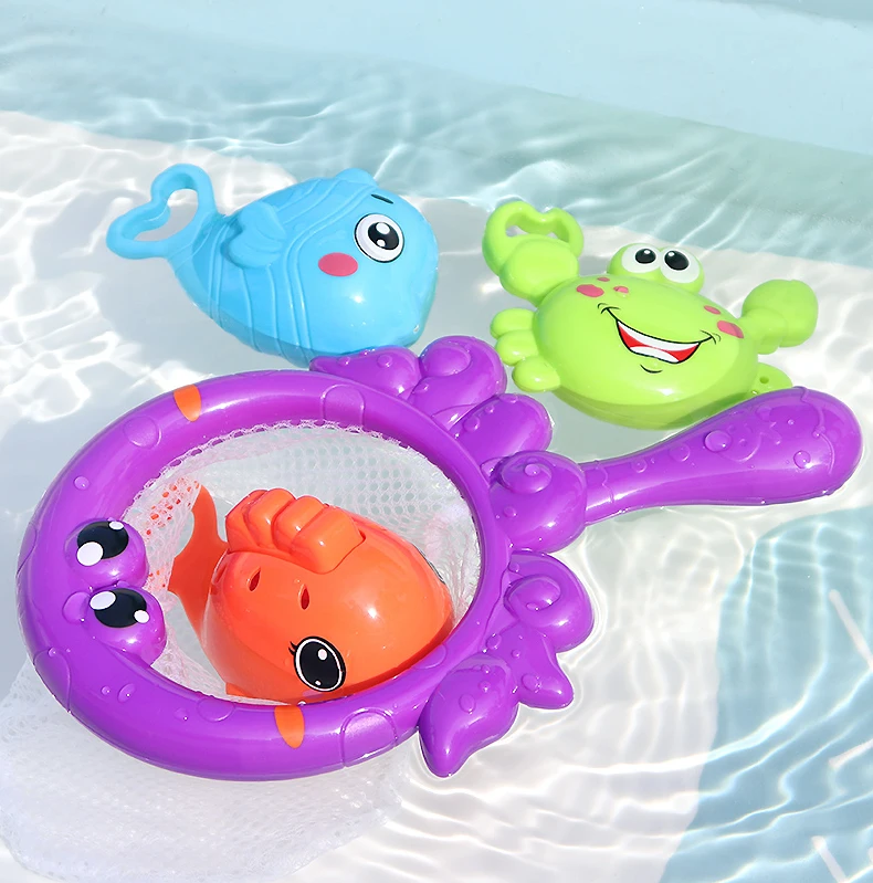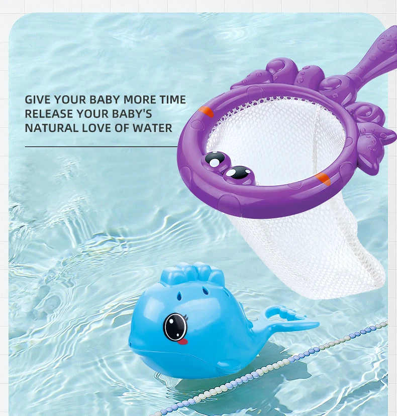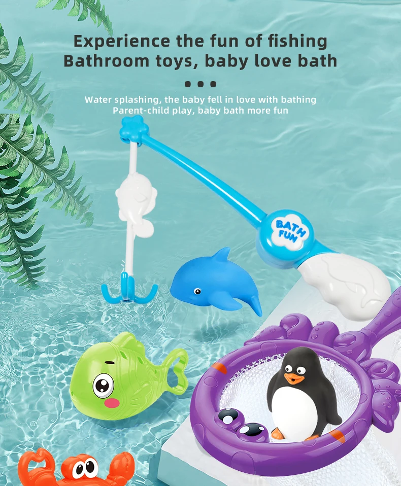 Make Bath Time Play Time: At first, they falls in love with scooping the fish up with fish net. And then try to hook fishes or crab, which will strengthen kids confidence and patience and developing the hand-eye coordination and body balance ability.