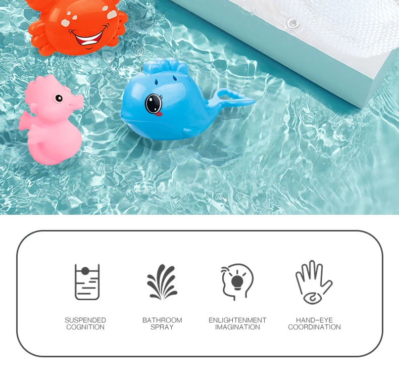 Fall in Love with Bath: The fish and crab can spout water when you squeeze it, help to make bath time enjoyable. The bright color toys help toddlers to identify the blue, green, orange “fish” and catch each one when asked. Colorful and fun bath toys in the tub.