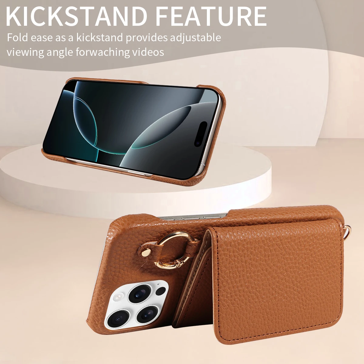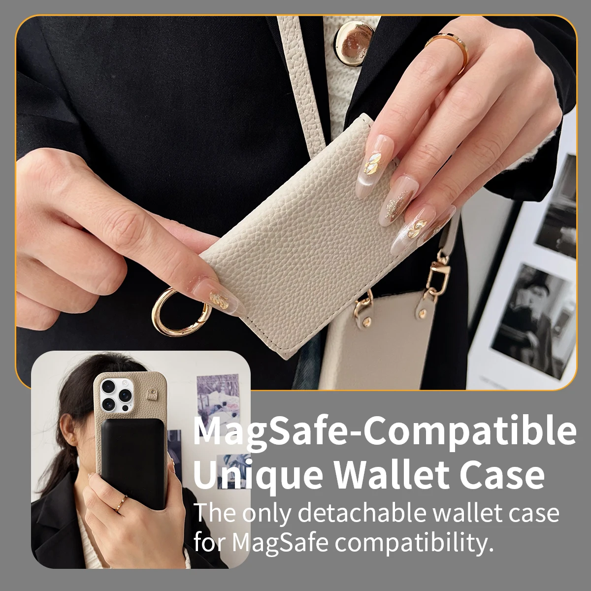For IPhone16 15 Pro Max 14 13 12 Series PU Leather Magsafe Magnetic Wireless Charging Shockproof Crossbody Wallet Phone Case