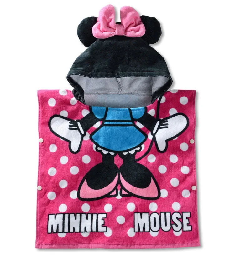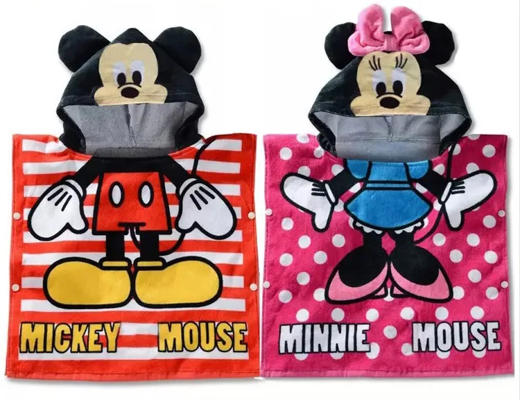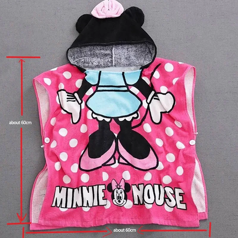 Color: Blue - Disney Kids Hooded Bath Towel Child Breathable Gauze Cloak Beach Towel Mickey Minnie Cartoon Boy Grl BAth Towel 60x120cm